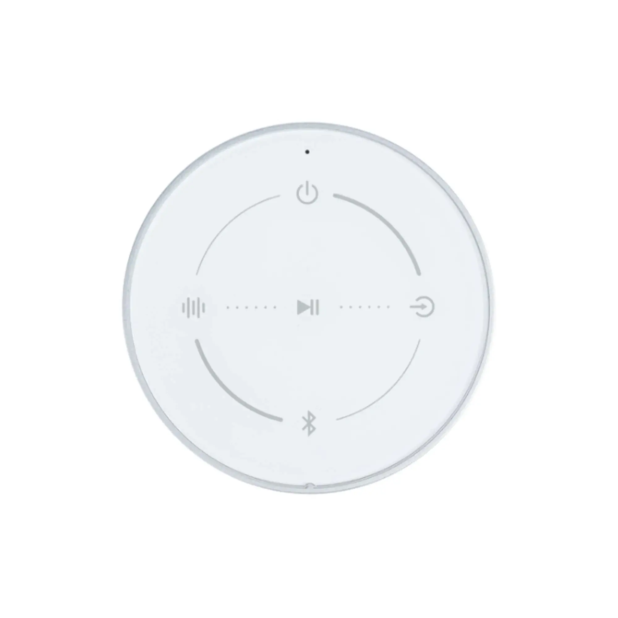 Скандинавский дизайн на контрасте матовой, молочно-белой, фронтальной поверхности, сложной формы боковые поверхности визуально рассечены тремя горизонтальными линиями, черные диффузоры динамиков со стальными “пулями” создают изысканно простой притягивающий взгляд образ.