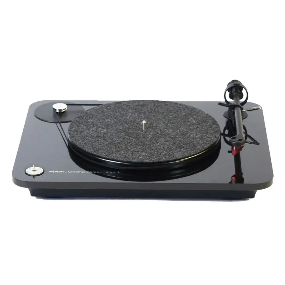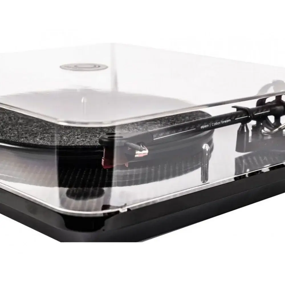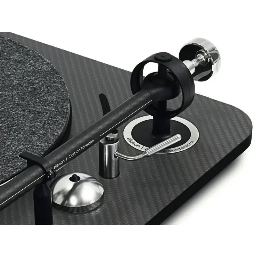 Сделанный во Франции Elipson Chroma Carbon — это элегантный проигрыватель с карбоновым покрытием. Управление ручное. Он оснащен красным картриджем Ortofon 2M red и очень легким и жестким карбоновым тонармом получившим название OTT (Orbital Torsion Tonearm).
