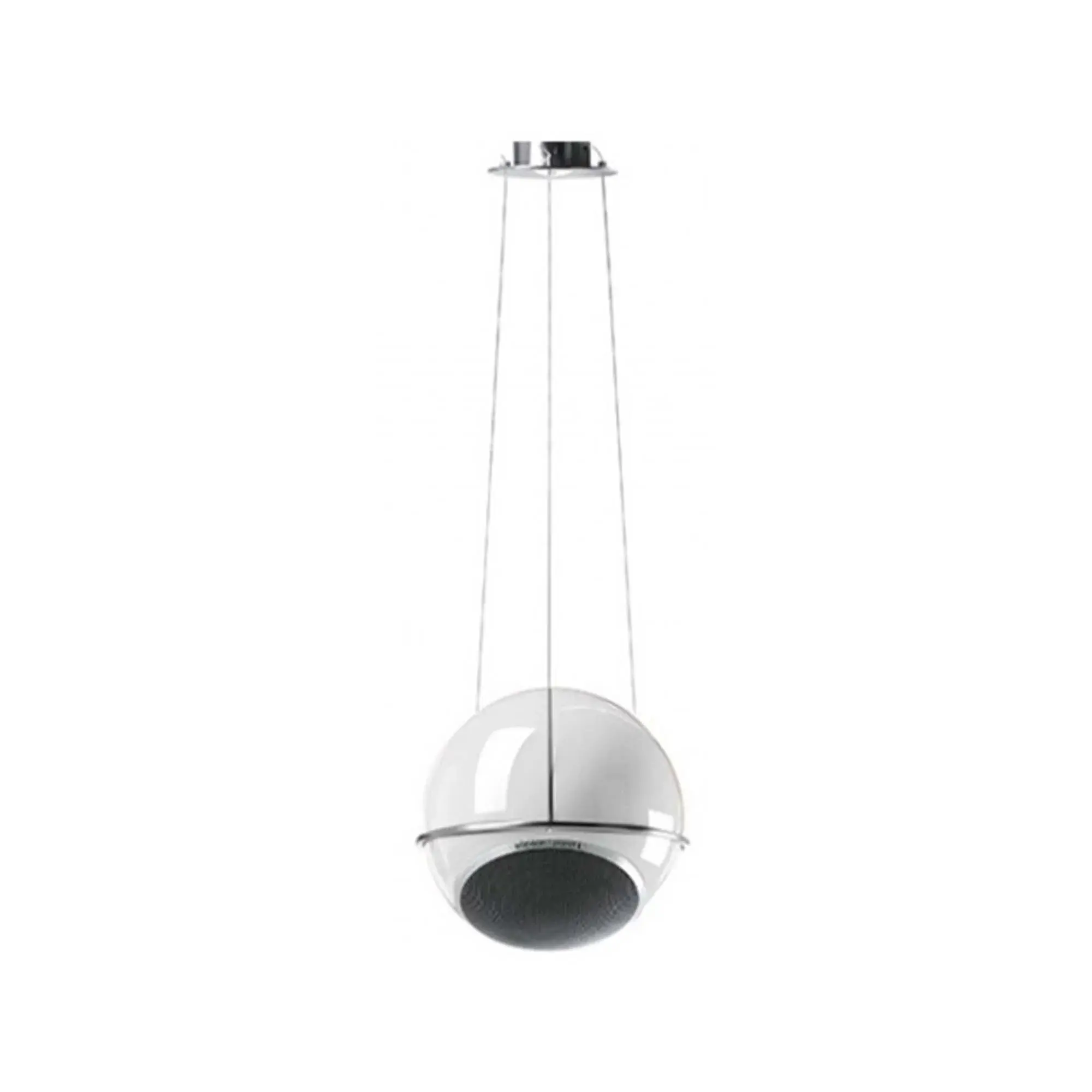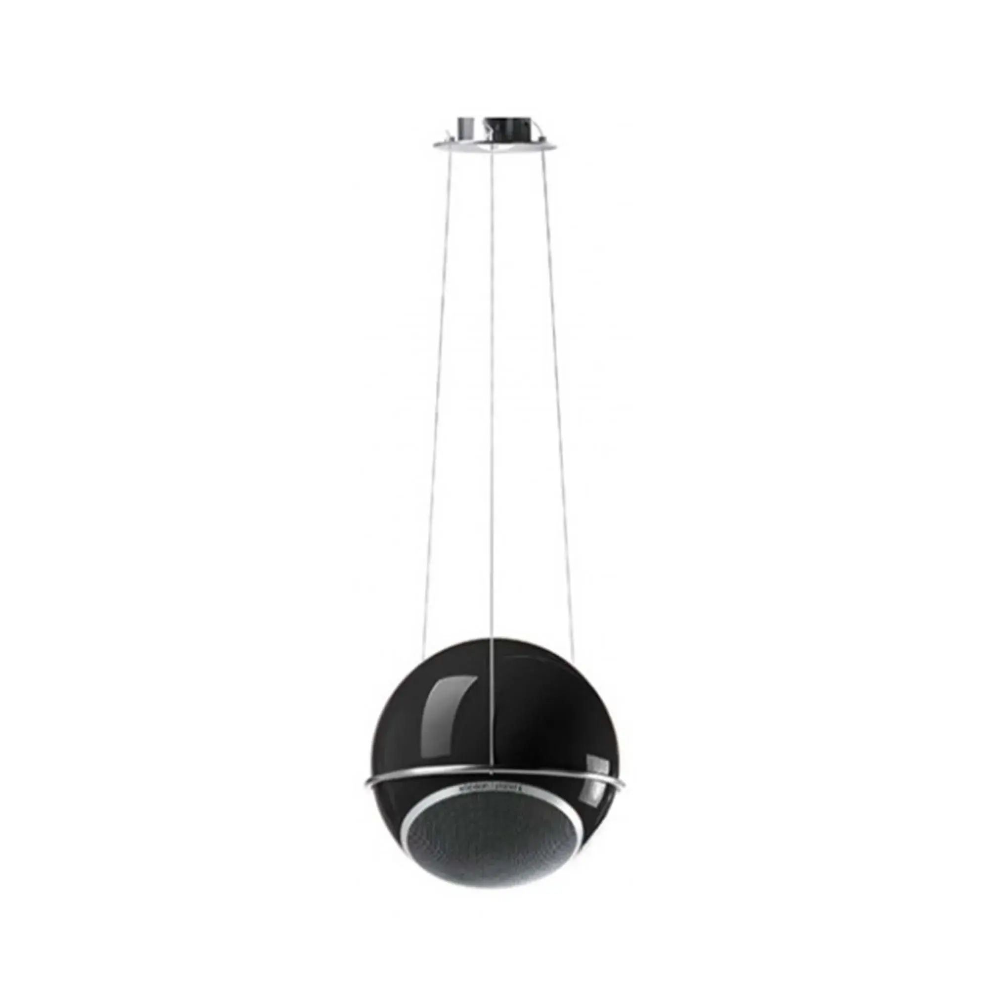 Потолочное крепление для сферической АС. Тонкие металлические струны позволяют закрепленной в них системе производить небольшие вращательные движения, создающие дополнительные эффекты и позволяющие по-новому воспринимать хорошо известное звучание.