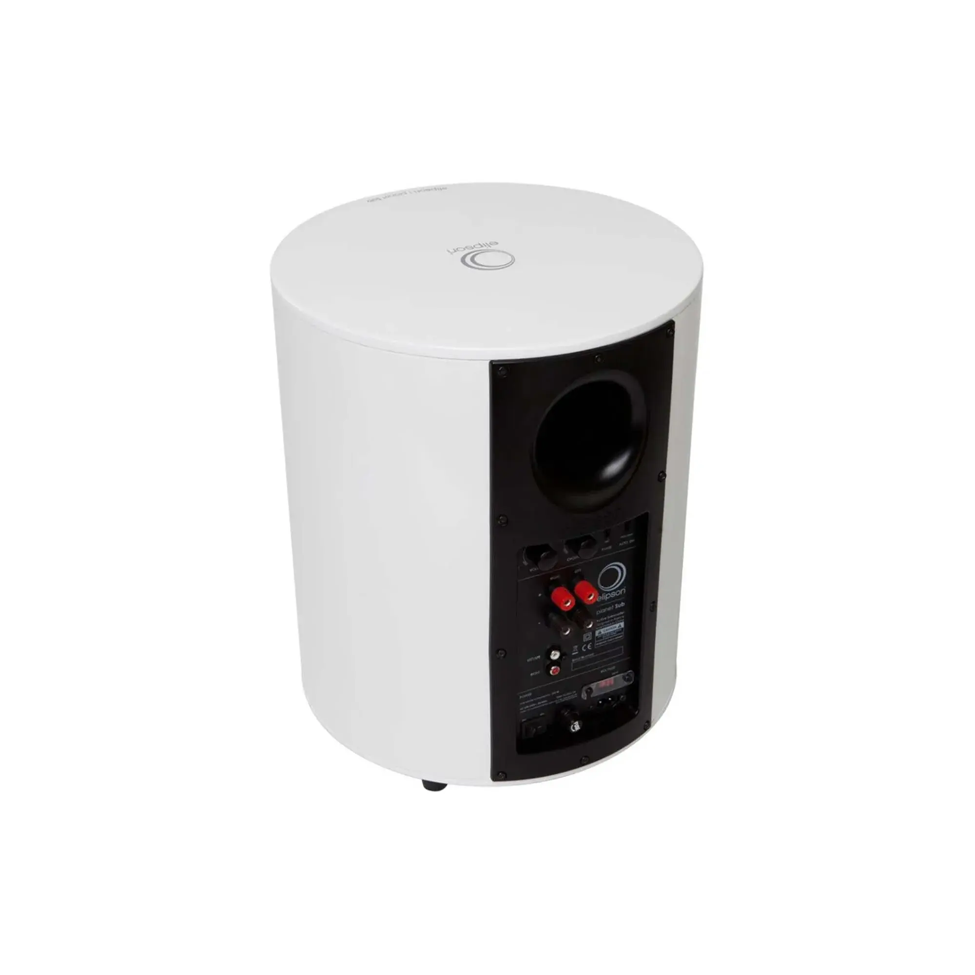 Сабвуфер оснащен низкочастотным динамиком с 20-сантиметровым диффузором из прессованной целлюлозы, направленным в пол, и 200-ваттным усилителем класса D. Акустическое оформление сабвуфера представляет собой фазоинвертор, выходное отверстие которого выведено на боковую панель, над блоком разъемов и управления.