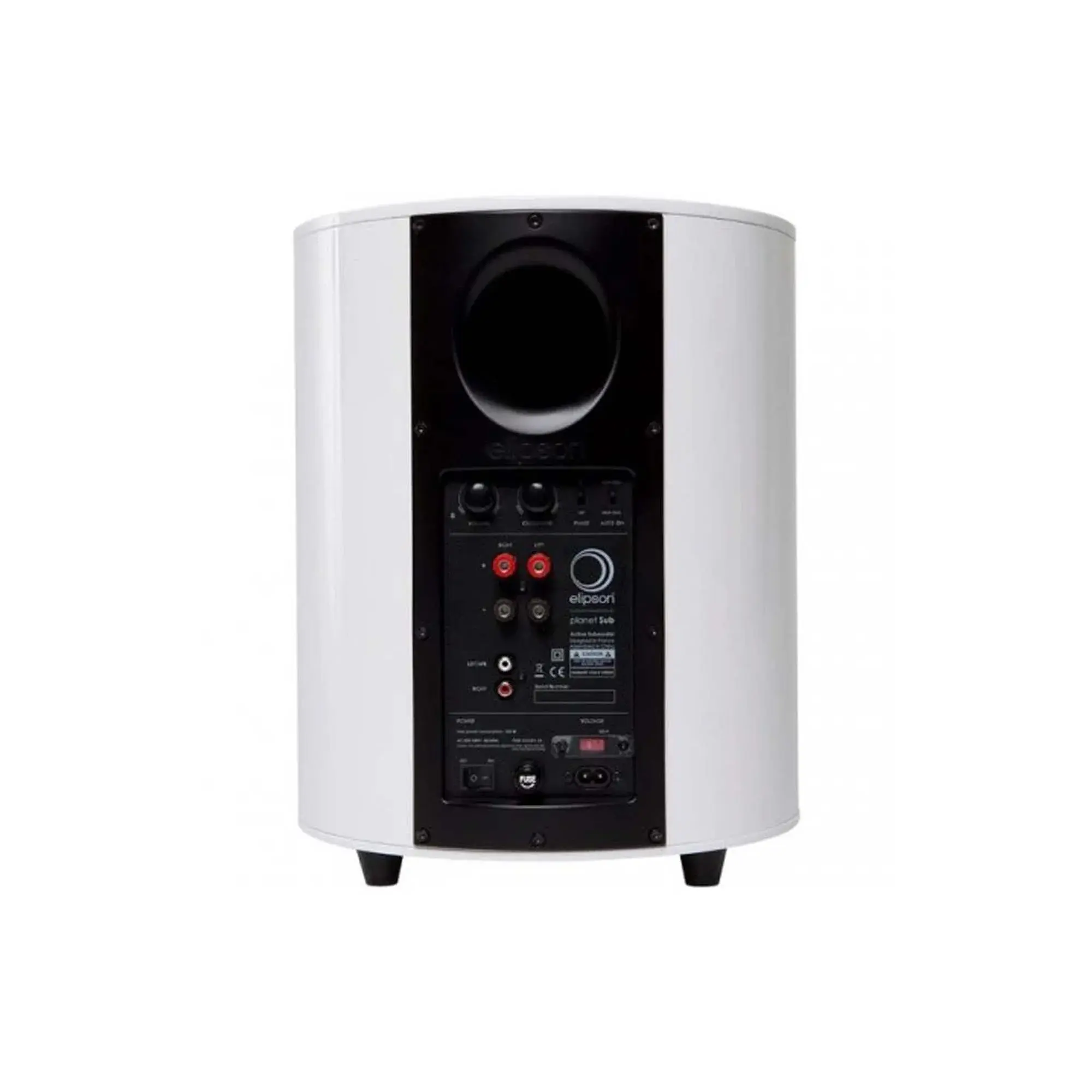 Elipson Planet Sub оснащен винтовыми клеммами для подключения к акустическим выходам усилителя, а также линейными RCA-входами. Предусмотрена возможность регулировки уровня входного сигнала, частоты настройки входного фильтра, изменения абсолютной фазы. При желании сабвуфер можно перевести в режим автоматического включения при появлении сигнала на его входе (с двумя установками чувствительности).