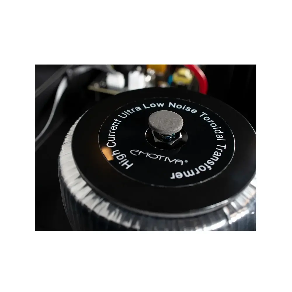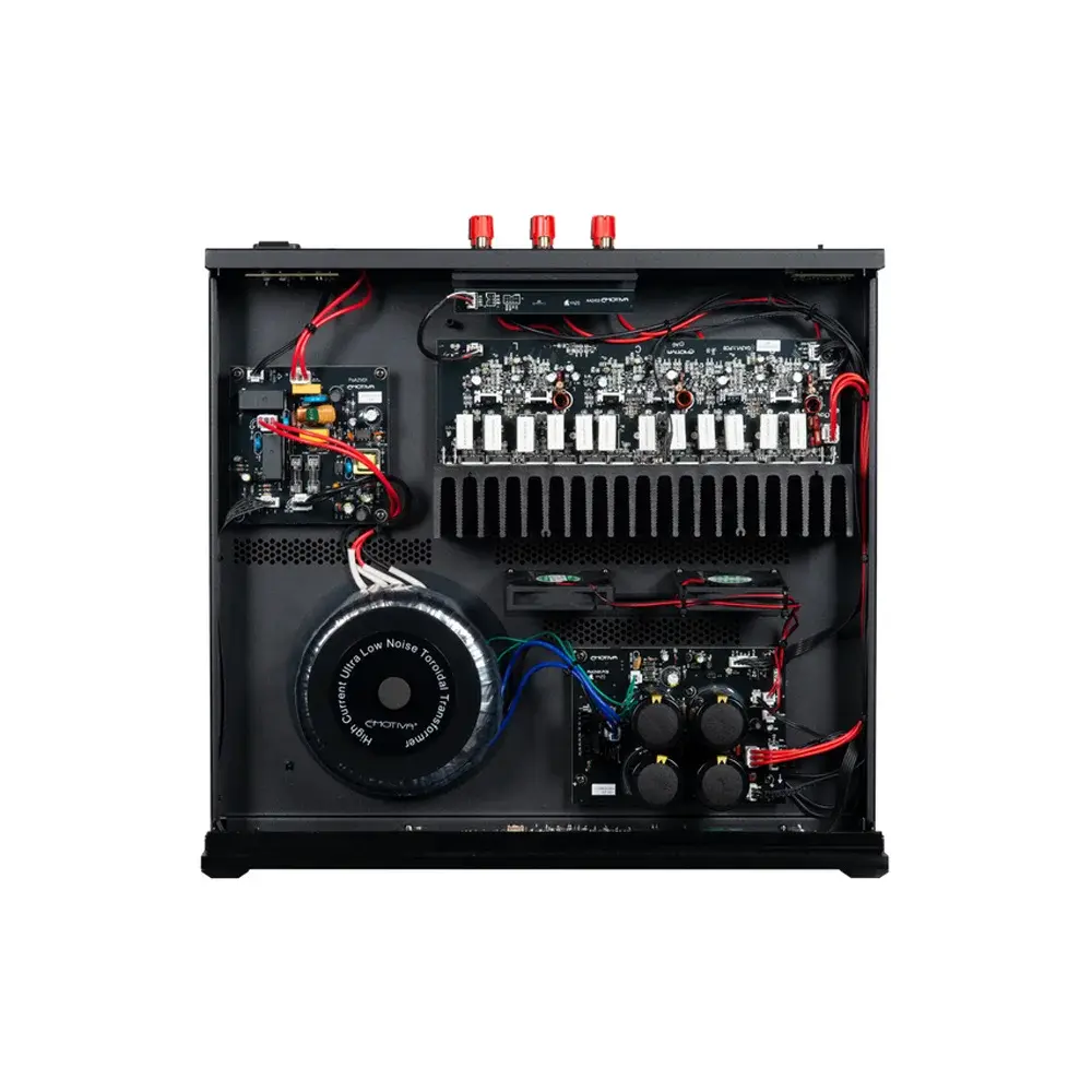 массивный встроенный источник питания с большим тороидальным трансформатором обеспечивает достаточно сильный ток, чтобы раскачать даже сложную акустику;