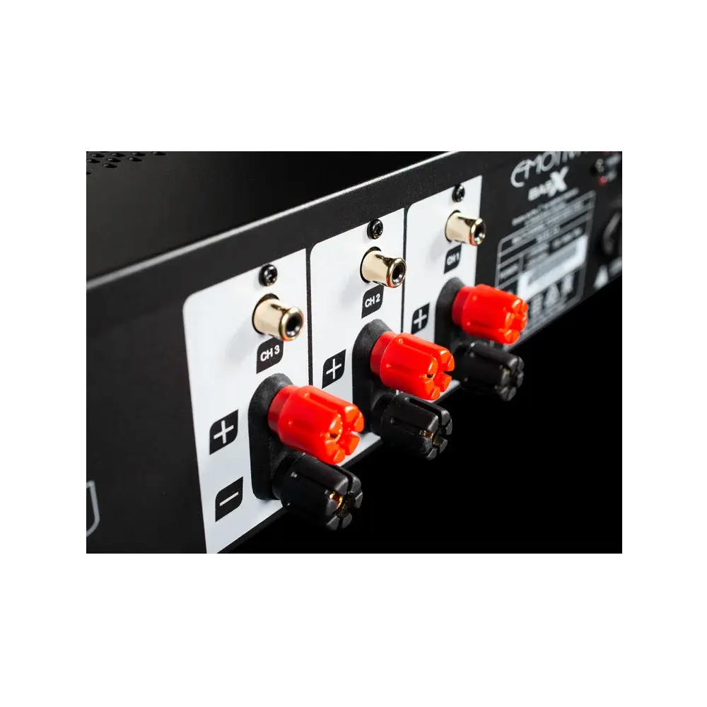 Emotiva BasX A3 представляет собой трехканальный усилитель мощности 140 Вт/канал на 8 Ом и 200 Вт/канал на 4 Ом с номинальным значением КНИ+Ш