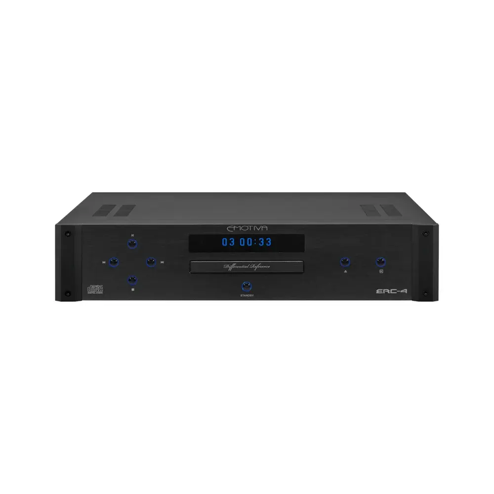 CD-проигрыватель и цифровой транспорт Emotiva ERC-4 Differential Reference представляет собой сочетание высококачественного CD-транспорта и превосходного симметричного ЦАП (цифро-аналогового преобразователя) в одном удобном и привлекательном устройстве. Являясь CD-проигрывателем и транспортом аудиофильского уровня, ERC-4 также имеет коаксиальный и оптический (Toslink) цифровые аудиовходы S/PDIF, поэтому аппарат можно использовать и как ЦАП в сочетании с любым другим источником цифрового аудиосигнала, имеющим коаксиальный или оптический выход.