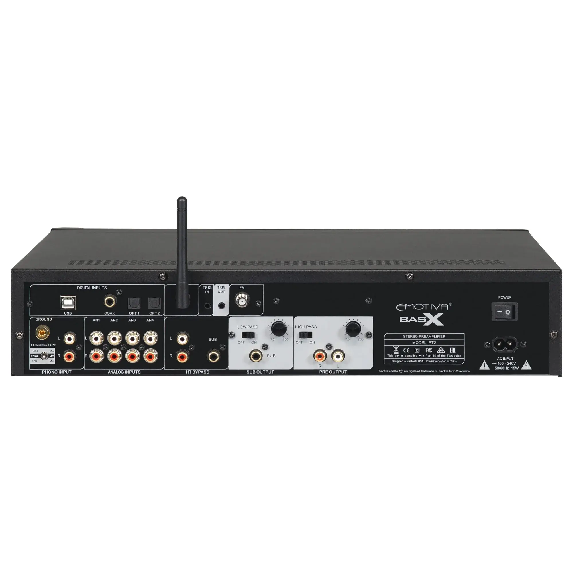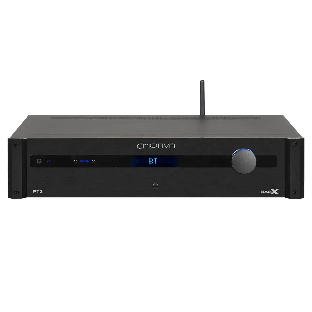 Emotiva BasX PT2 позволяет вам испытать гибкость и превосходное качество звука, которых вы можете достичь с помощью отдельных аудиофильских компонентов по удивительно доступной цене. BasX PT2 — это высококачественный стереофонический предусилитель, который включает в себя высококачественный стереофонический FM-тюнер, большое количество входов для аналоговых источников линейного уровня, встроенный ЦАП с большим количеством цифровых входов для всех ваших цифровых аудиоисточников, включая асинхронный USB-вход с высоким разрешением и встроенный Bluetooth-приемник с поддержкой AptX HD, а также высокопроизводительный фонокорректор, поддерживающий картриджи с подвижным магнитом и подвижной катушкой.