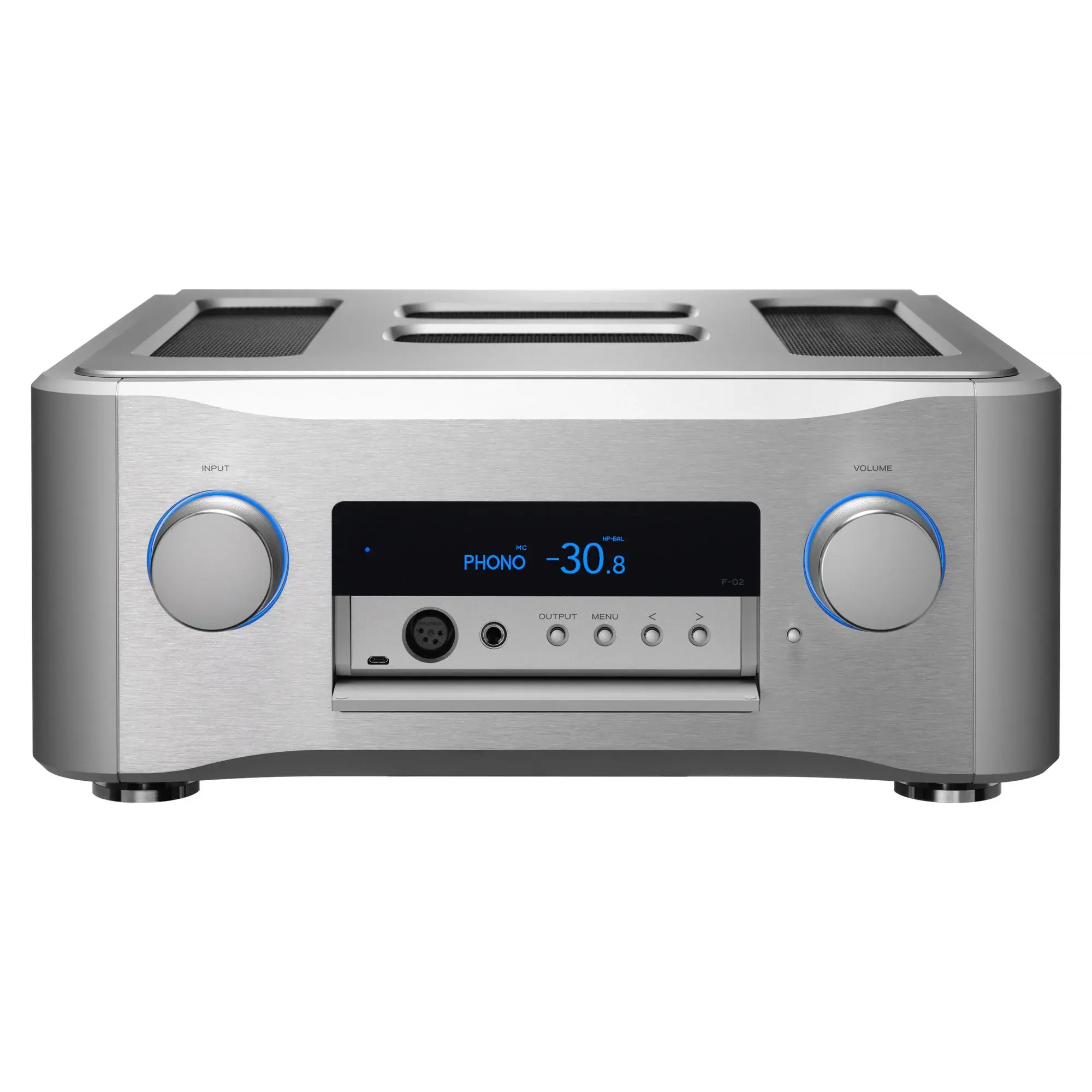 F-02 также качественно реагирует на аналоговое воспроизведение, благодаря двойному монофоническому предусилителю (MM/MC) с независимыми L/R цепями. Левый и правый источники питания также независимы, что обеспечивает идеальное разделение каналов.