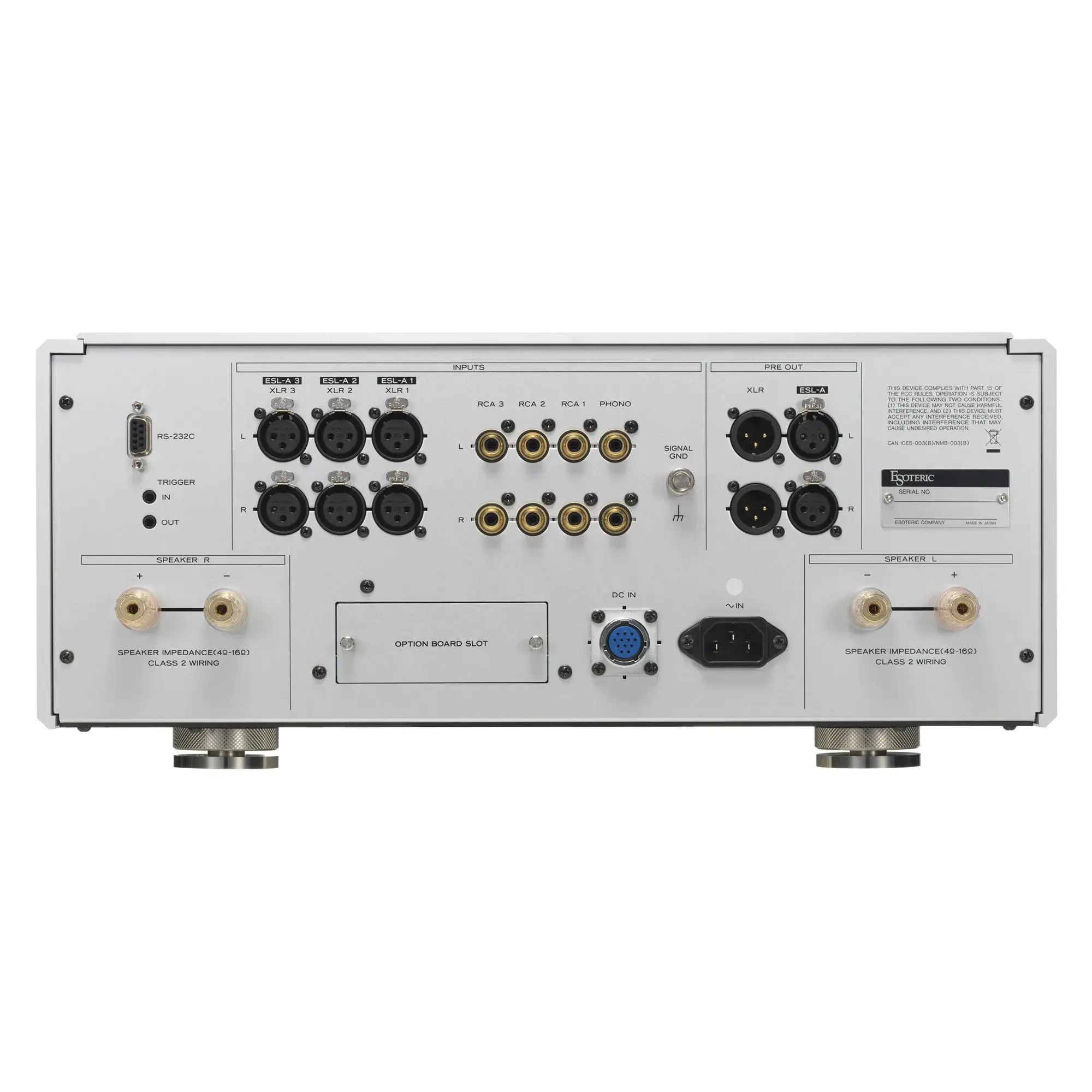 Усилитель для наушников представляет собой крупную эволюцию по сравнению с предыдущей серией F. Чтобы соответствовать новым стилям прослушивания с исключительным качеством воспроизведения, Esoteric сосредоточила свои технологии проектирования усилителей и опыт для достижения наивысших характеристик. Схемотехника представляет собой полностью сбалансированный двойной моноблок, который повторяет конструкцию предусилителя линейного каскада, со сбалансированным выходом (4-контактный XLR) и несимметричным выходом (6,3 мм). Обладая полностью сбалансированной выходной мощностью 600 МВт (при нагрузке 32 Ом), этот превосходный усилитель для наушников управляет высокоимпедансными наушниками с большим запасом мощности. Коэффициент усиления усилителя также можно регулировать от 0 до +18 дБ с шагом 3 дБ в соответствии с подключенными наушниками.