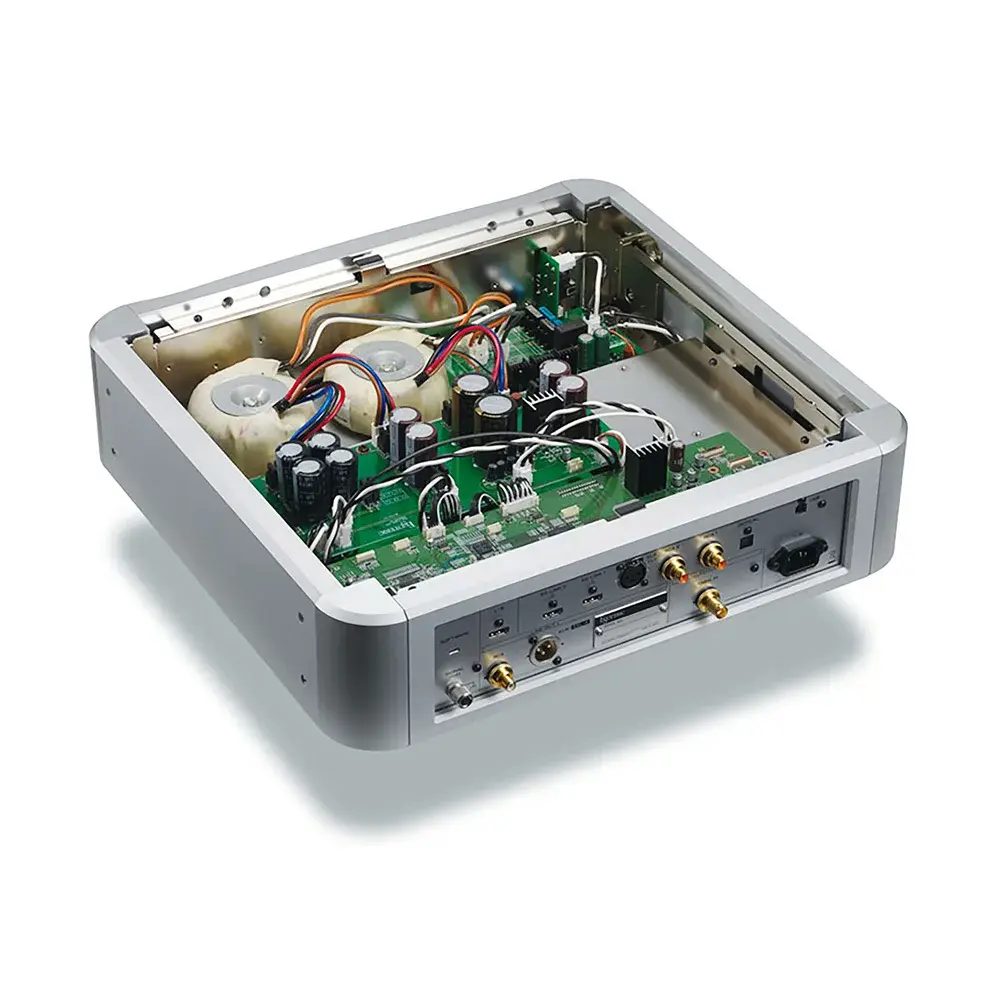 D1X - это современный моноблочный цифро-аналоговый преобразователь производства японской компании Esoteric. В данной модели впервые в компании реализована технология 64-битной обработки сигнала Master Sound Discret. ЦАП поддерживает обработку сигналов с частотой дискретизации до 768 кГц PCM и DSD до 22,5 МГц. Конструкция ЦАП-а оснащена фирменным цифровым интерфейсом ES-LINK 5, поддерживающим передачу PCM в разрешении 48-бит/768 кГц. Кроме того, доступны коаксиальные и оптические разъемы, а также коммутационные интерфейсы RCA и XLR. D1X также включает в себя USB-интерфейс поддерживающий передачу форматов DSD частотой дискретизации 22,5 МГц, PCM 768 кГц / 32-бит и асинхронную передачу. Построенный на четырех независимых тороидальных трансформаторах блок питания содержит конденсаторы, произведенные по фирменной технологии EDLC (Electric Double-Layer Capacitor).