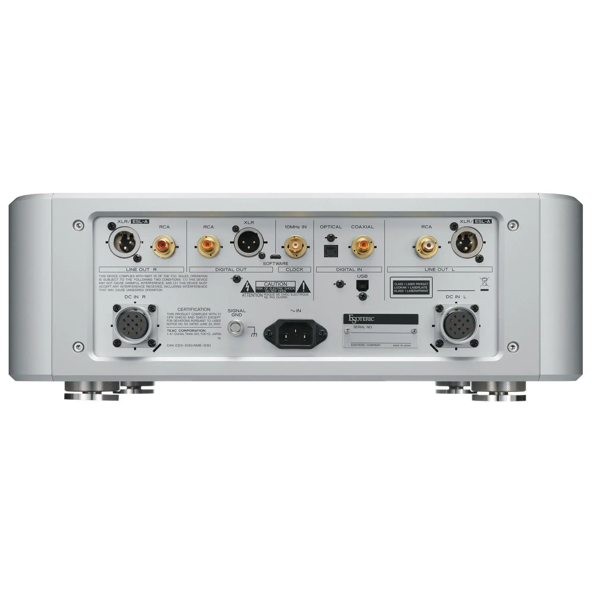 Тактовый генератор "Master Sound" для цифрового проигрывателя, используемые в новых моделях SE, применяют базовую концепцию дизайна модуля OCXO собственного производства G1X к внутренним часам моделей цифровых проигрывателей. Уникальная схема с использованием тщательно подобранных дискретных компонентов, таких как большой кварцевый генератор, обеспечивает высокое качество звука, отражающее философию Esoteric в каждой детали, чего невозможно достичь с помощью готового тактового модуля. Новые модели SE также могут быть подключены к внешнему генератору тактовой частоты Grandioso G1X для улучшения качества звука за счет синхронизации внутренней схемы с еще более точной тактовой частотой 10 МГц.