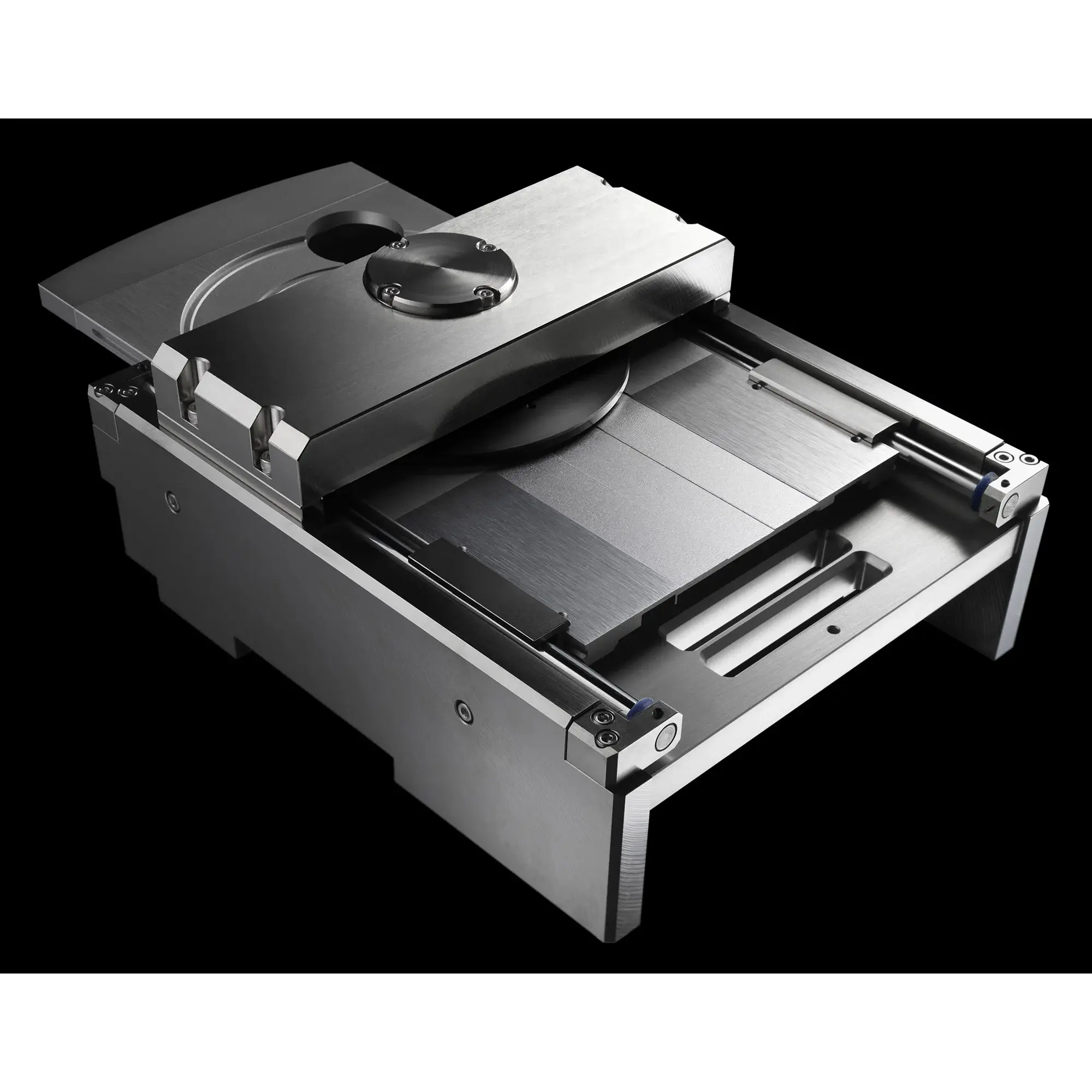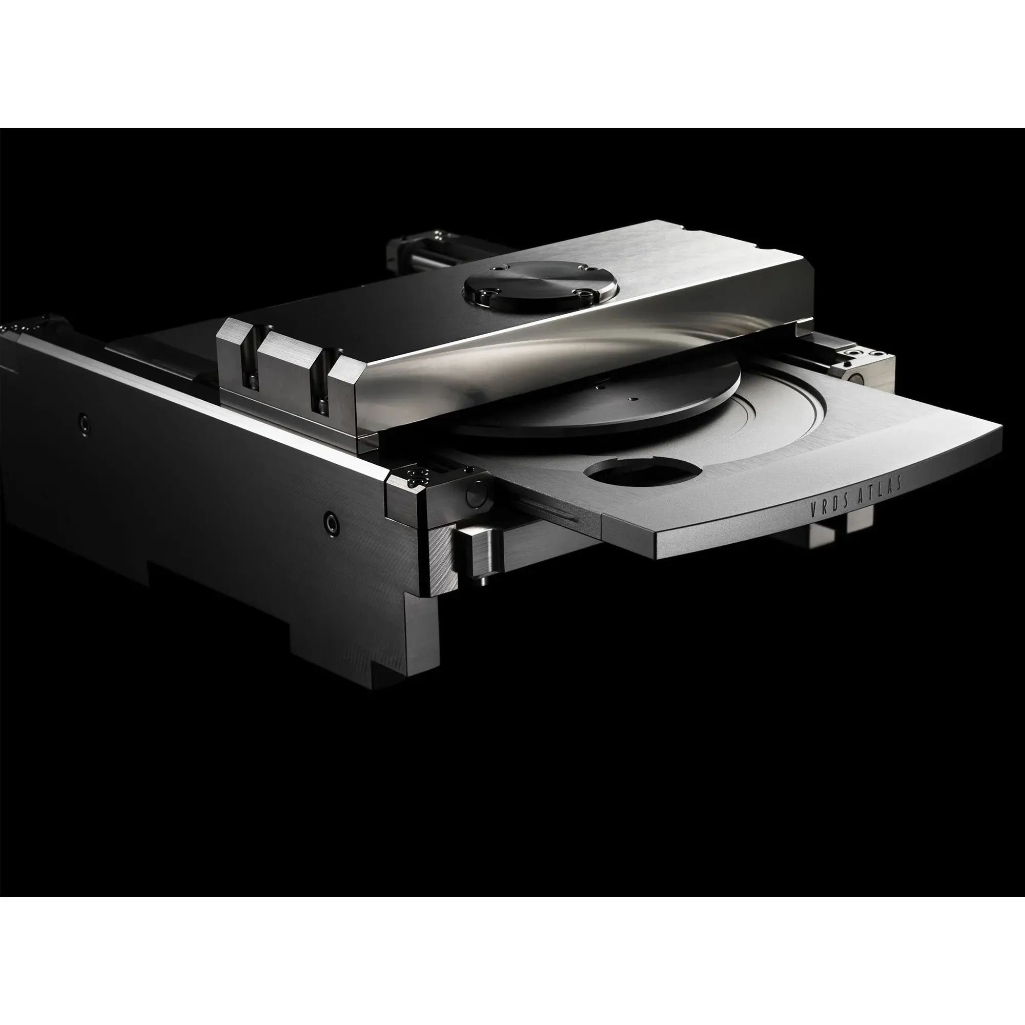 ATLAS может похвастаться самой высокой жесткостью и весом в истории механизмов VRDS. Благодаря своим новым боковым панелям и мосту из стали марки SS400, ATLAS на 27% тяжелее (6,6 кг блок механики, 13,5 кг включая основание), чем NEO, обеспечивая за счет этого как исключительную жесткость, так и впечатляющее звучание. Он гасит любые вибрации, которые могут негативно повлиять на качество звука. Поворотный стол изготовлен из твердого дюралюминия для отличного качества звука, а его шпиндель оснащен недавно разработанной системой упорных подшипников. Эта бесфрикционная одноточечная система поддержки шпинделя обеспечивает плавное и бесшумное вращение поворотного стола.