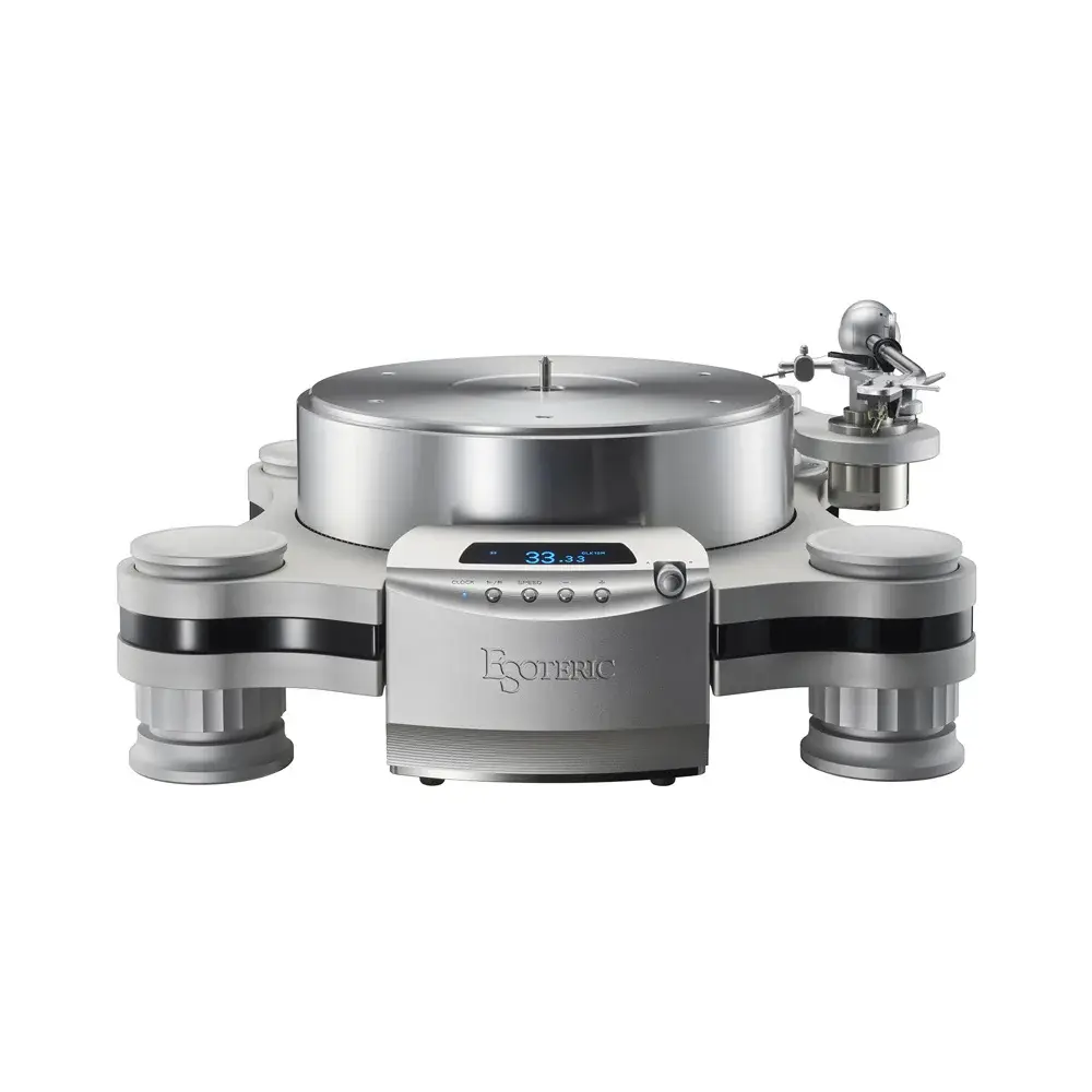 Проигрыватель обладает возможностью синхронизации привода двигателя по тактовой частоте 10 МГц и независимой конфигурацией шасси из трех блоков является кульминацией уникальной философии конструирования Esoteric и механических / электронных технологий.