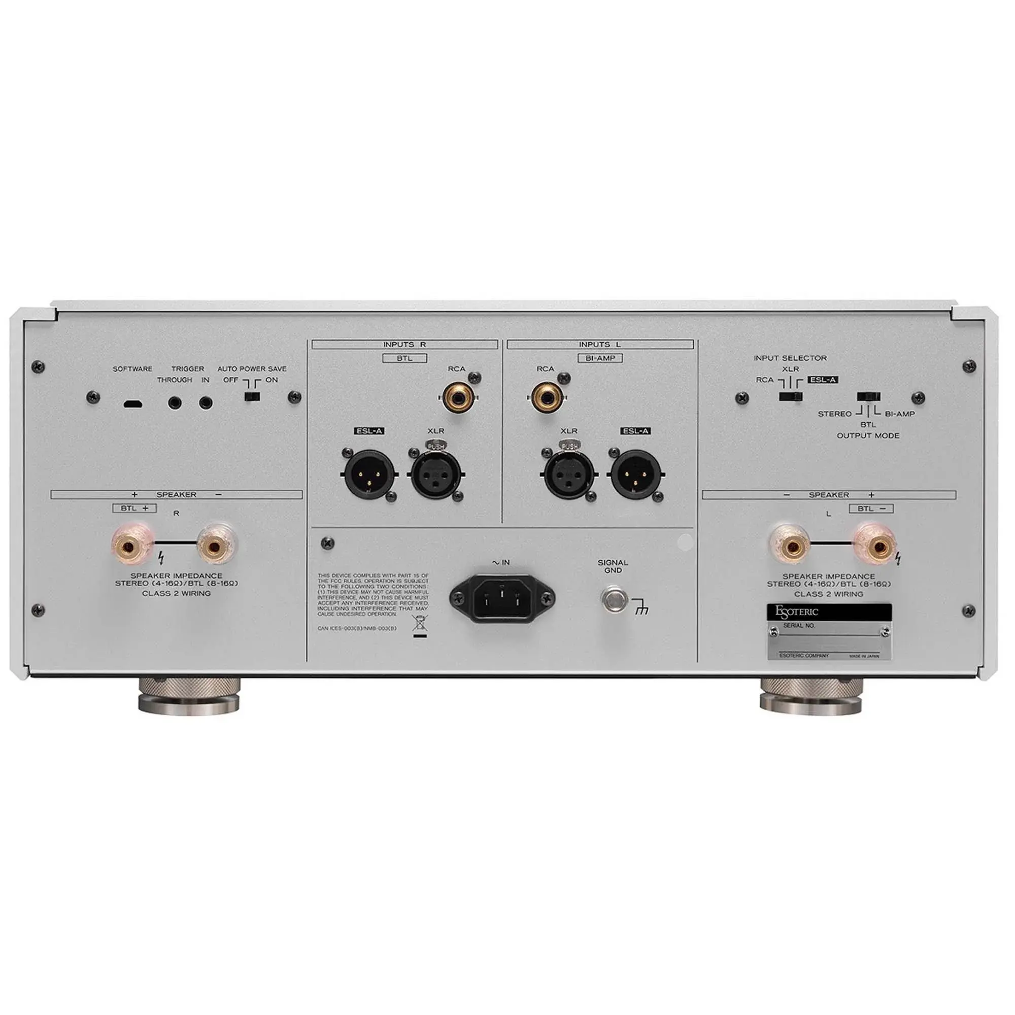 Аппарат имеет конструкцию типа «двойное моно», в блоке питания использован силовой трансформатор с большим Ш-образным сердечником мощностью 940 ВА и специальные накопительные конденсаторы емкостью 10 000 мкФ (по 4 штуки на канал). В модели есть фирменный интерфейс Esoteric для подачи токового сигнала от предварительного усилителя. Усилитель выдает в стереофоническом режиме 30 Ватт на канал в классе А при нагрузке сопротивления 8 Ом (60 Ватт на 4 Ома). В мостовом монофоническом режиме мощность повышается до 120 Ватт на 8 Ом.