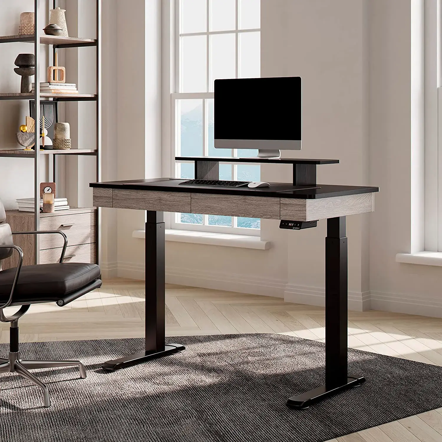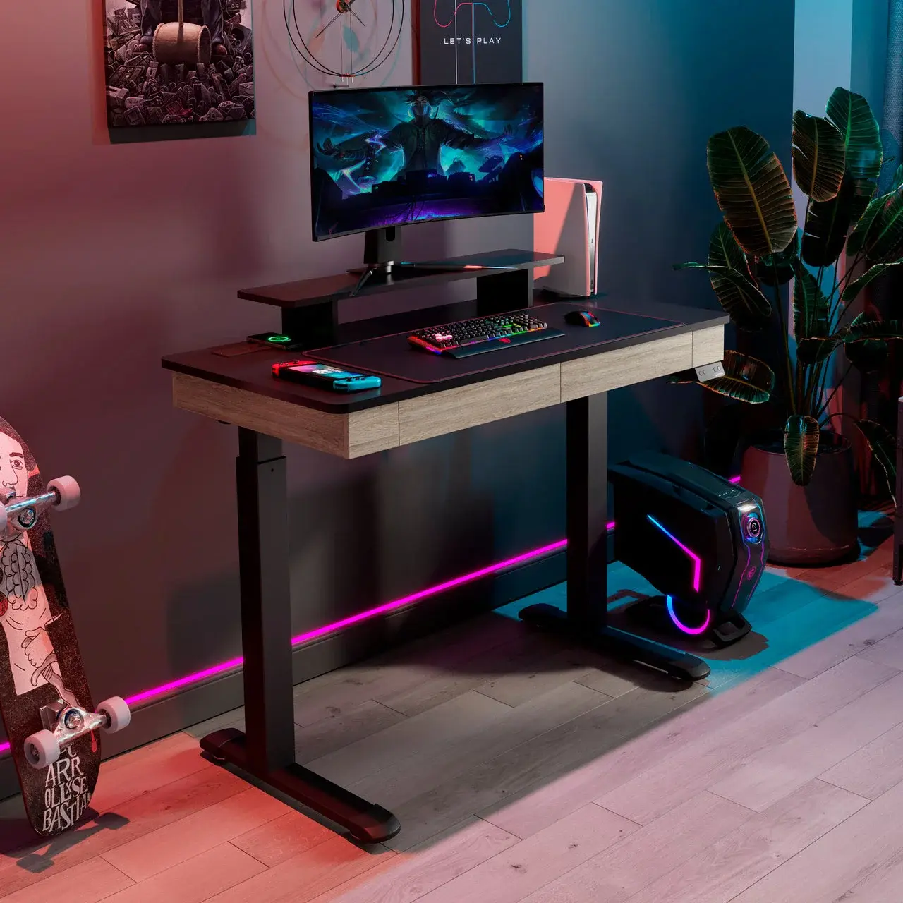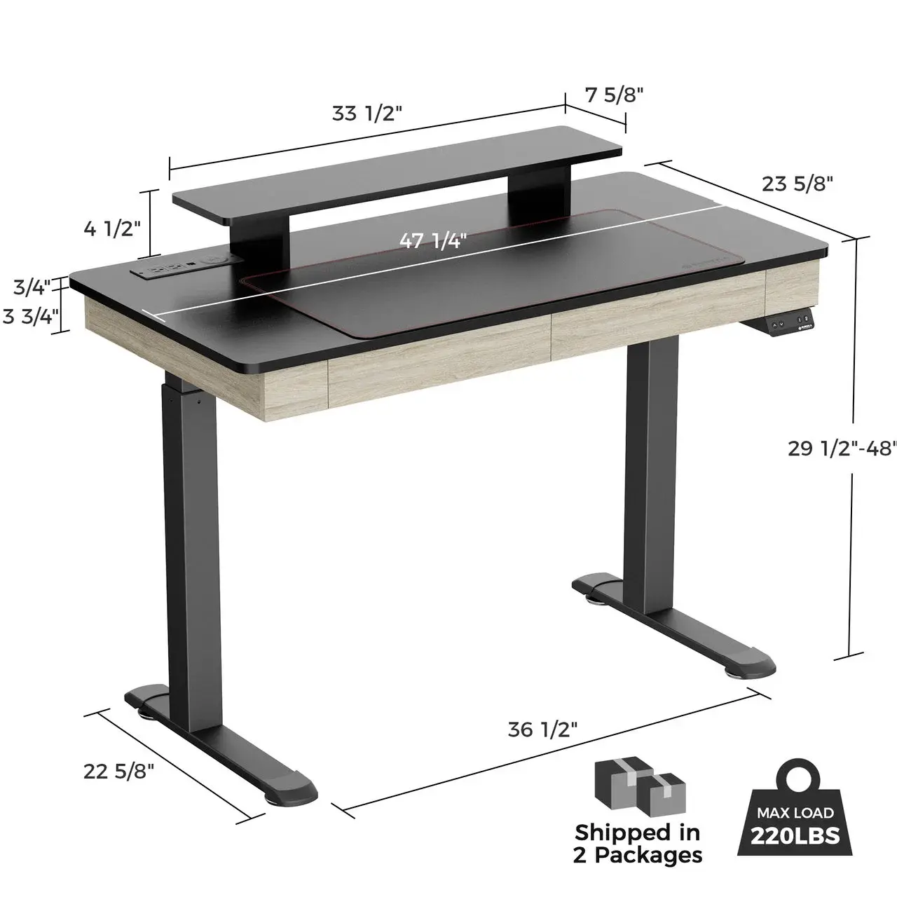 EUREKA ED-I47 — это прочный и устойчивый стол со стальной опорной рамой, в которую встроены электромоторы, что позволяет настраивать высоту столешницы простым нажатием кнопки на пульте управления. Также в стол встроены зарядная станция с беспроводной зарядкой, полка для монитора и два просторных выдвижных ящика. Благодаря специальной системе кабель-менеджмента, на поверхности стола никогда не будет беспорядка из проводов.