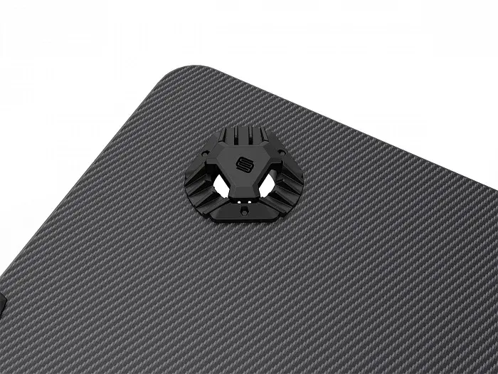 Столешница шириной в 148 см, рассчитана на размещение двух мониторов, игровой консоли, клавиатуры и различного дополнительного оборудования. Поверхность имеет текстуру углеродного волокна и устойчива к различным внешним воздействиям и загрязнению.