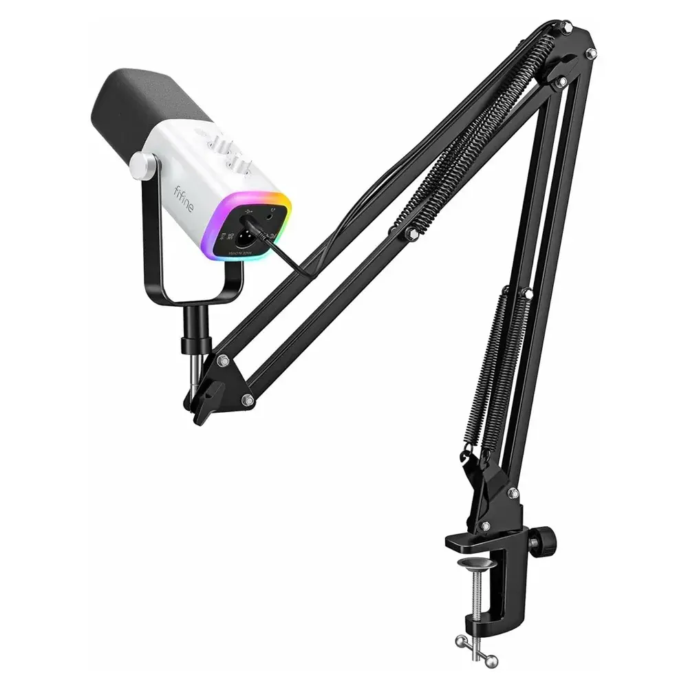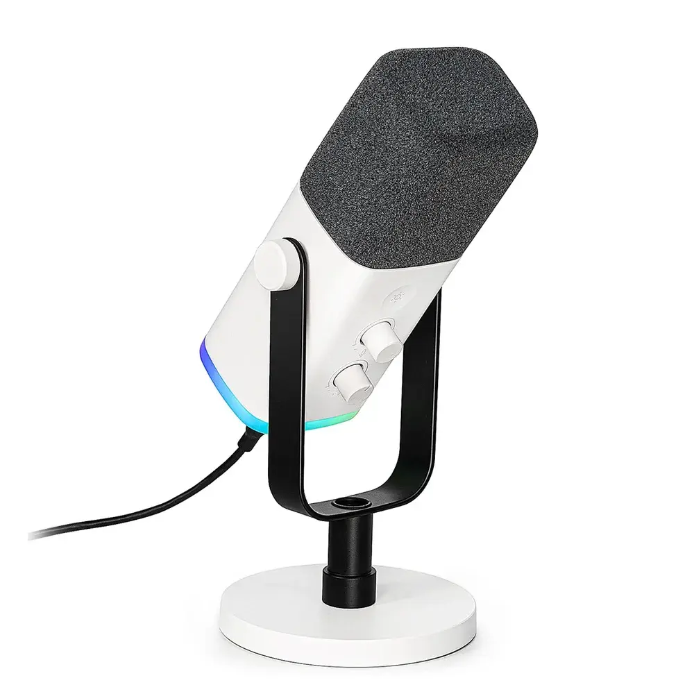 Микрофон имеет кардиоидный капсюль, который обеспечивает высокую четкость и детализацию речи. Микрофон Fifine AmpliGame AM8 выполнен в эргономичном дизайне и крепится на комплектную настольную подставку. Он имеет универсальное подключение USB-C и не требует дополнительных настроек для начала работы. Он также оснащён профессиональным звуковым разъёмом XLR. На корпусе модели расположены кнопки контроля громкости наушников и микрофона.