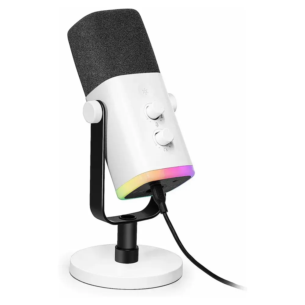 В основании Fifine AmpliGame AM8 находится светодиодное кольцо с настраиваемой подсветкой. Также на микрофоне имеется разъём для наушников 3.5 mini-Jack. Функциональность Fifine AmpliGame AM8 позволяет без каких-либо помех и шумов записывать звук, а также общаться в онлайн-играх и различных программах, будь то Skype, Discord, Steam или TeamSpeak. Еще одним плюсом модели является возможность подключения его к портативным гаджетам на iOS и Android, используя соответствующий USB-адаптер.