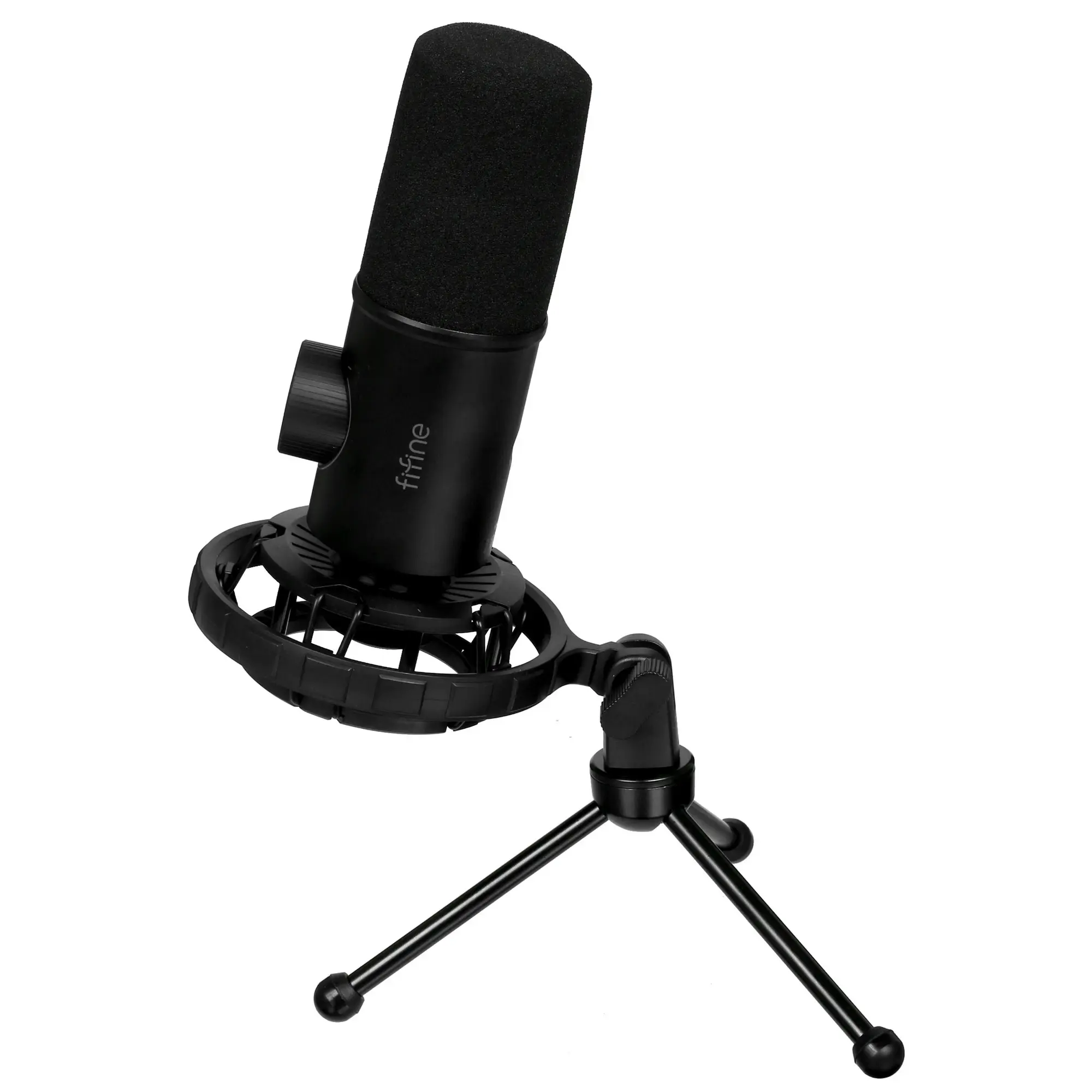 Fifine K658 представляет собой динамический микрофон с проводным USB-подключением, который отлично подойдет для записи подкастов, стримов, озвучки, проведения трансляций на ютубе, твиче или в Facebook. Он имеет кардиоидный капсюль, который обеспечивает высокую четкость и детализацию речи. В комплекте поставляется стойка-трипод для удобного размещения микрофона на столе и амортизирующая антивибрационная платформа, минимизирующая помехи.