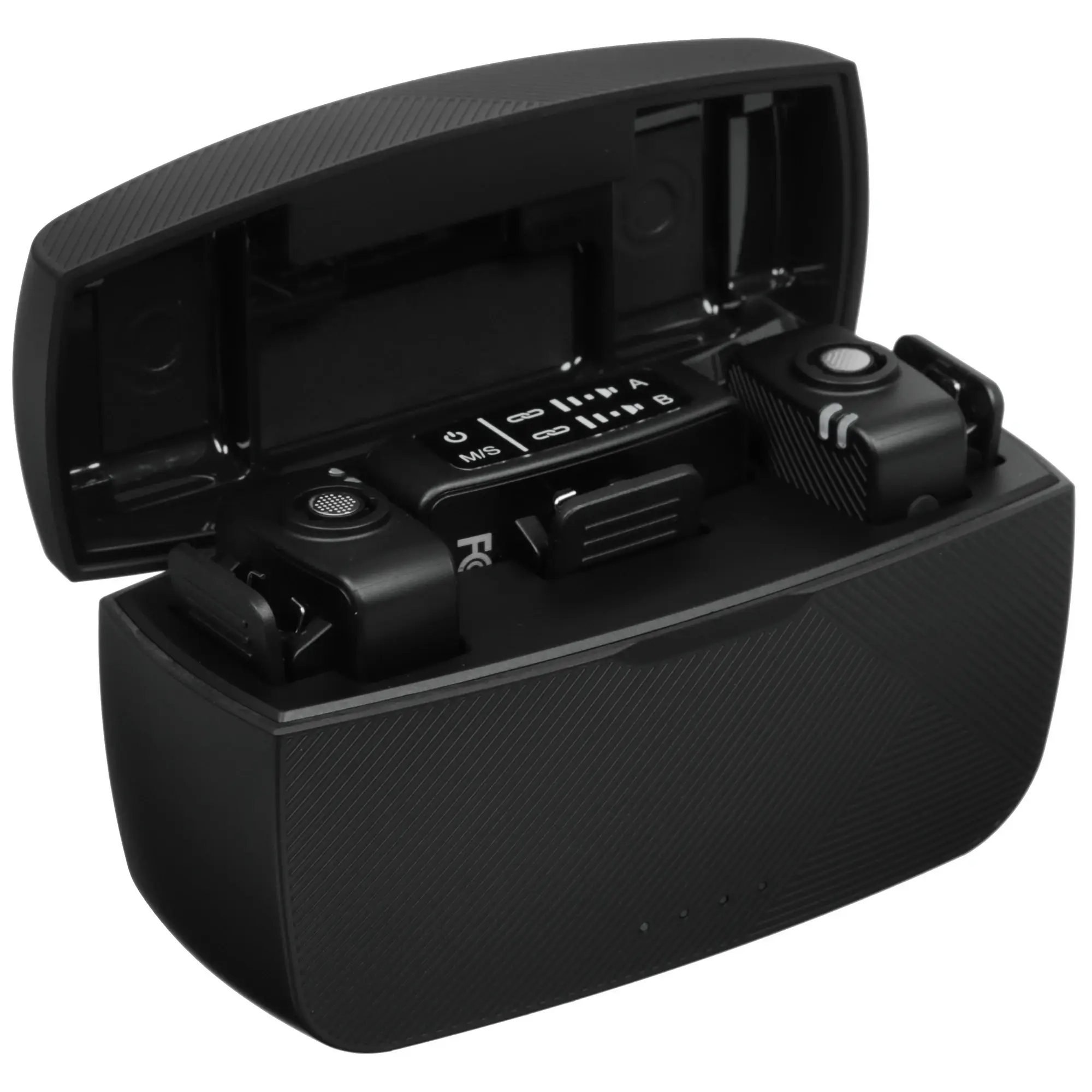 Микрофон M9 имеет сдержанный матовый дизайн. Микрофон небольшой и легкий, что позволяет легко закрепить его на одежде и скрытно носить. Отделение для хранения простое, легкое и удобное для переноски.