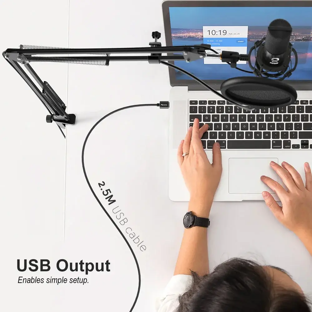 Он имеет кардиоидный капсюль 16 мм, который обеспечивает высокую четкость и детализацию речи. В комплекте поставляется длинный микрофонный держатель, поп-фильтр и шок-маунт. Микрофон Fifine T669 выполнен в удобном компактном дизайне и не займет много места на рабочей поверхности. Он имеет универсальное подключение USB-A, не требующее дополнительных настроек для начала работы. В комплекте с моделью идет удобный держатель с возможностью регулировки длины и наклона.