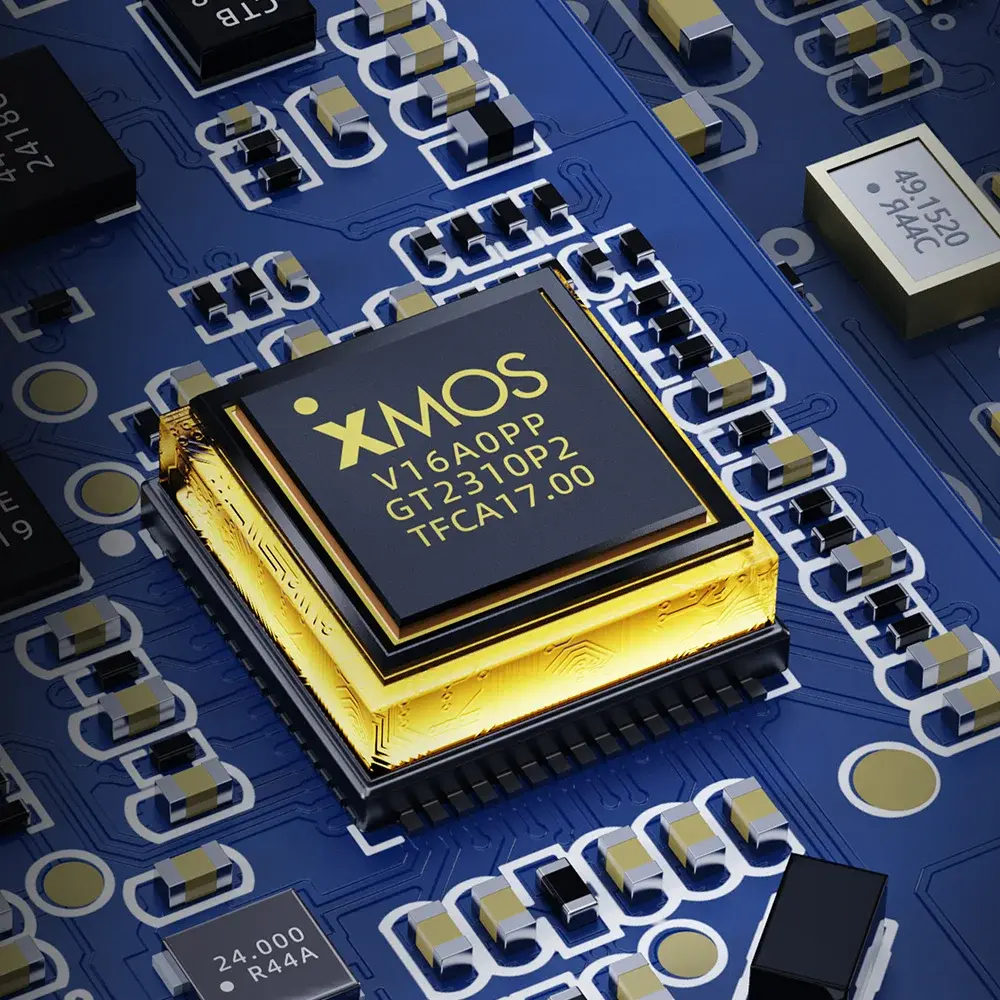 В качестве USB-чипа используется флагманский процессор XMOS XU316, который отличается меньшей задержкой, более стабильной передачей данных и лучшей совместимостью по сравнению с обычно используемыми USB-контроллерами. Поддержка аудио с частотой 768 кГц / 32 бит, DSD512 native и полное декодирование MQA означает, что чип может обрабатывать практически любой аудиопоток, который попадается на его пути. Достаточная вычислительная мощность XU316 также позволяет воспроизводить на BTR 17 аудиосигнал высокой четкости с частотой до 192 кГц.