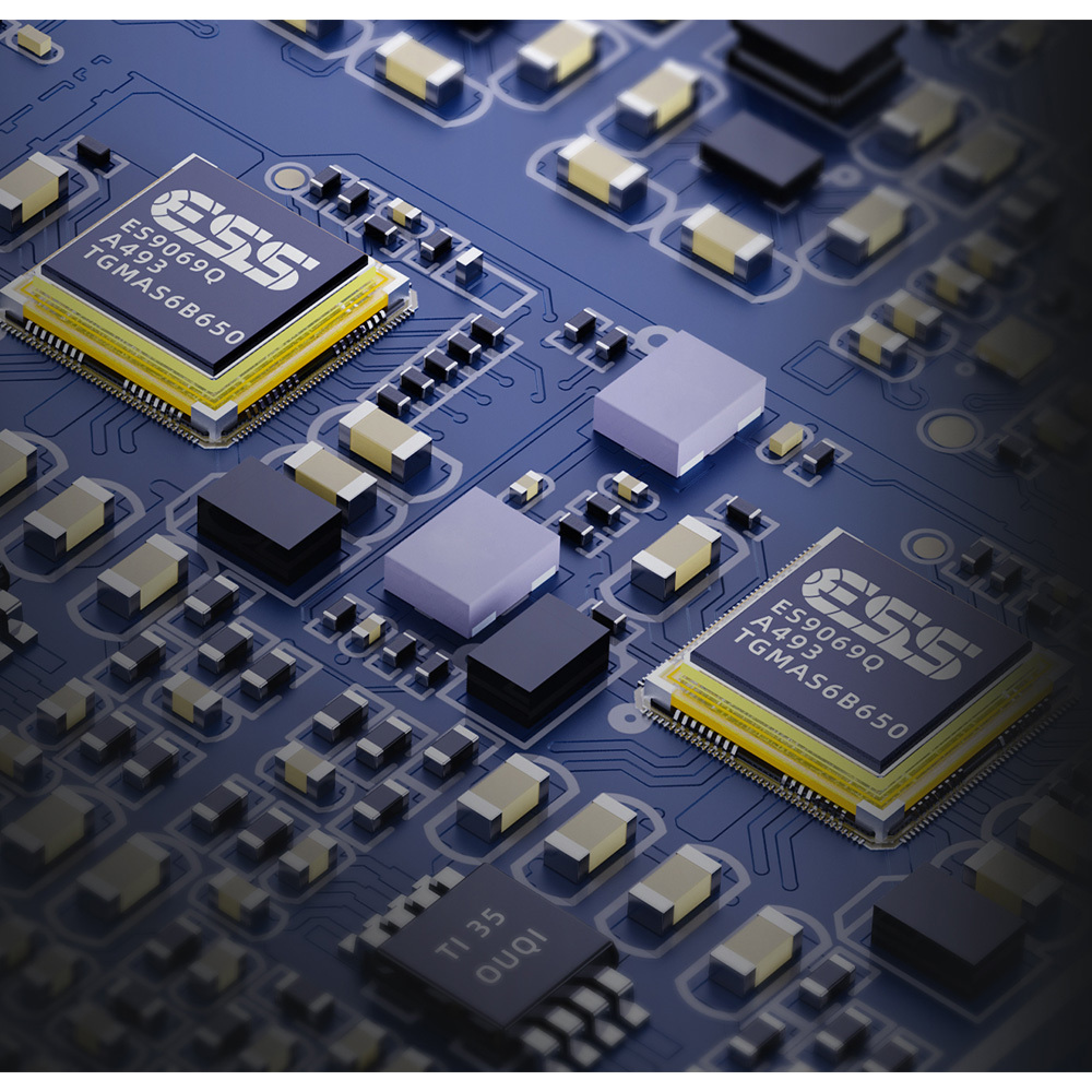 Внутри BTR 17 установлены два ЦАП ESS ES9069Q, основанные на 32-разрядной архитектуре HyperStream четвертого поколения, обеспечивающие высокую производительность при меньшем энергопотреблении. Такая архитектура помогает еще больше снизить уровень цифрового шума в ЦАП, достигая динамического диапазона в 130 дБ и общего гармонического искажения в 120 дБ. В результате получается более насыщенное, музыкальное звучание на более чистом звуковом фоне.