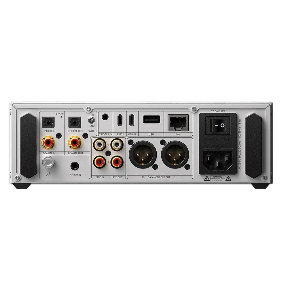 8 пленочных конденсаторов Panasonic + 32 smd резистора имеют низкий температурный перепад и низкий уровень шума, что обеспечивают стабильное качество звука как при высокой, так и при низкой температуре. Высококачественные твердотельные конденсаторы Beryl имеют сверхнизкое ЭПР, высокую защиту от помех, стабильное и чистое электропитание. 4 конденсатора ELNA MILLIC II, 4 конденсатора Nichicon audio-specific, 6 конденсаторов ELNA RA3 audio-specific обеспечивают высококачественный звук и великолепную звуковую сцена. 4 комплекта соединительных кабелей из бескислородной меди с серебряным покрытием. Аудиосигналы, передаваемые между различными внутренними платами, отличаются высоким качеством и минимальными потерями благодаря использованию проводов из бескислородной меди с серебряным покрытием. Позолоченные разъемы NEUTRIK в форме тюльпана, устойчивые к окислению и износу, обеспечивают точное и надежное соединение.