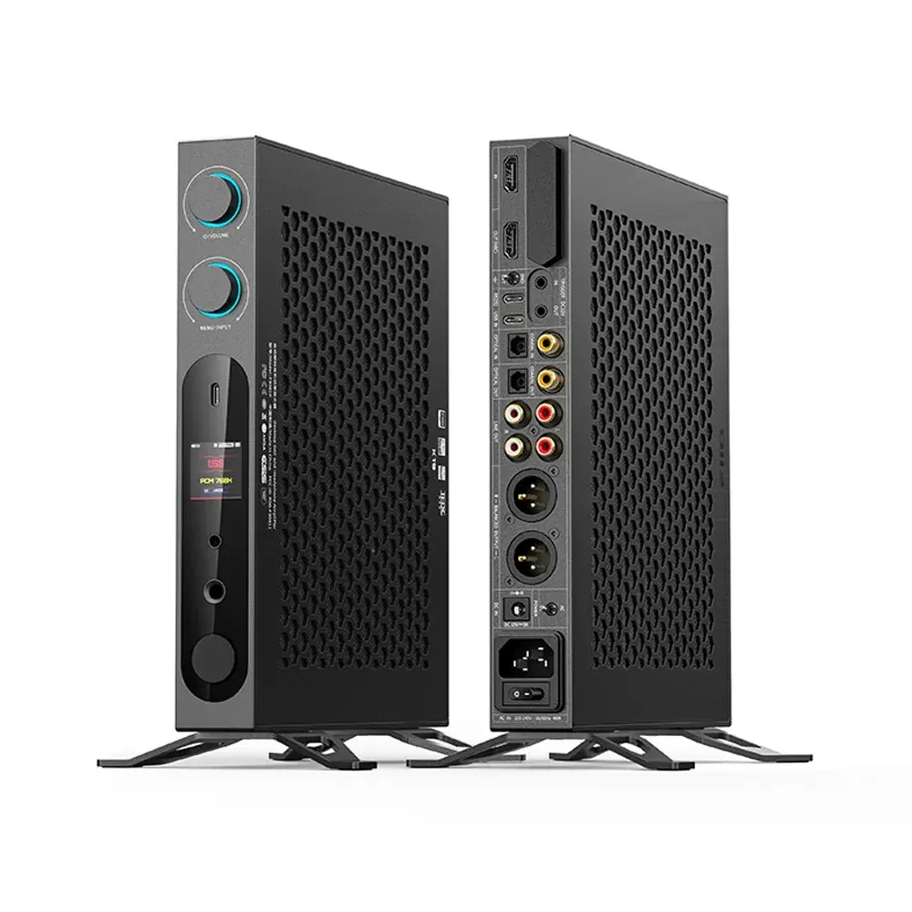 Настольный усилитель для наушников/ЦАП FiiO K19 выделяется среди других устройств благодаря обширному набору интерфейсов, рассчитанных на широкий спектр источников. Устройство оснащено универсальным набором интерфейсов, включающим оптический и коаксиальный интерфейс S/PDIF для высококачественного цифрового аудио, а также интерфейс USB-C, предназначенный для простого подключения к ПК и Mac. Кроме того, устройство поддерживает накопители USB-C и оснащено портом HDMI с поддержкой обратного канала ARC, что расширяет возможности подключения.