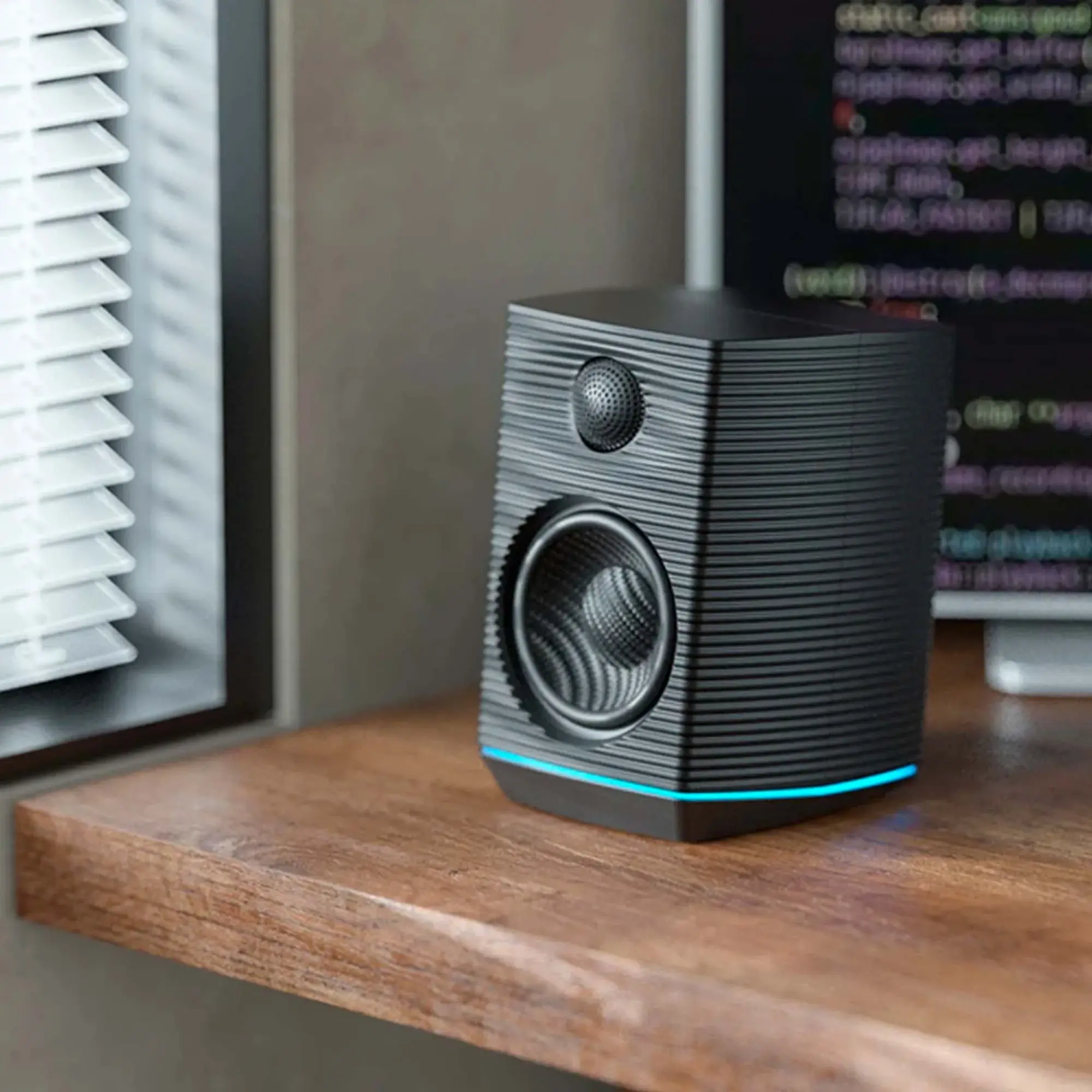Модель представляет собой компактную (163x120x132 мм) двухполосную акустическую систему, объем алюминиевого корпуса 2.35 л, разделение полос (частота раздела 3,4 кГц) обеспечивает цифровой DSP. Используются динамики: дюймовый ВЧ с шелковым куполом и 3.5″ НЧ/СЧ динамик с диффузором из карбона. Эти большие НЧ-динамики имеют неотъемлемое преимущество перед меньшими НЧ-драйверами в динамике, проецировании более широкой звуковой сцены и других звуковых атрибутах. При просмотре фильмов или прослушивании музыки этот НЧ-динамик действительно способен передать грандиозность звучания даже на больших громкостях. Акустическое оформление — фазоинвертор (его порт изогнут внутри корпуса).