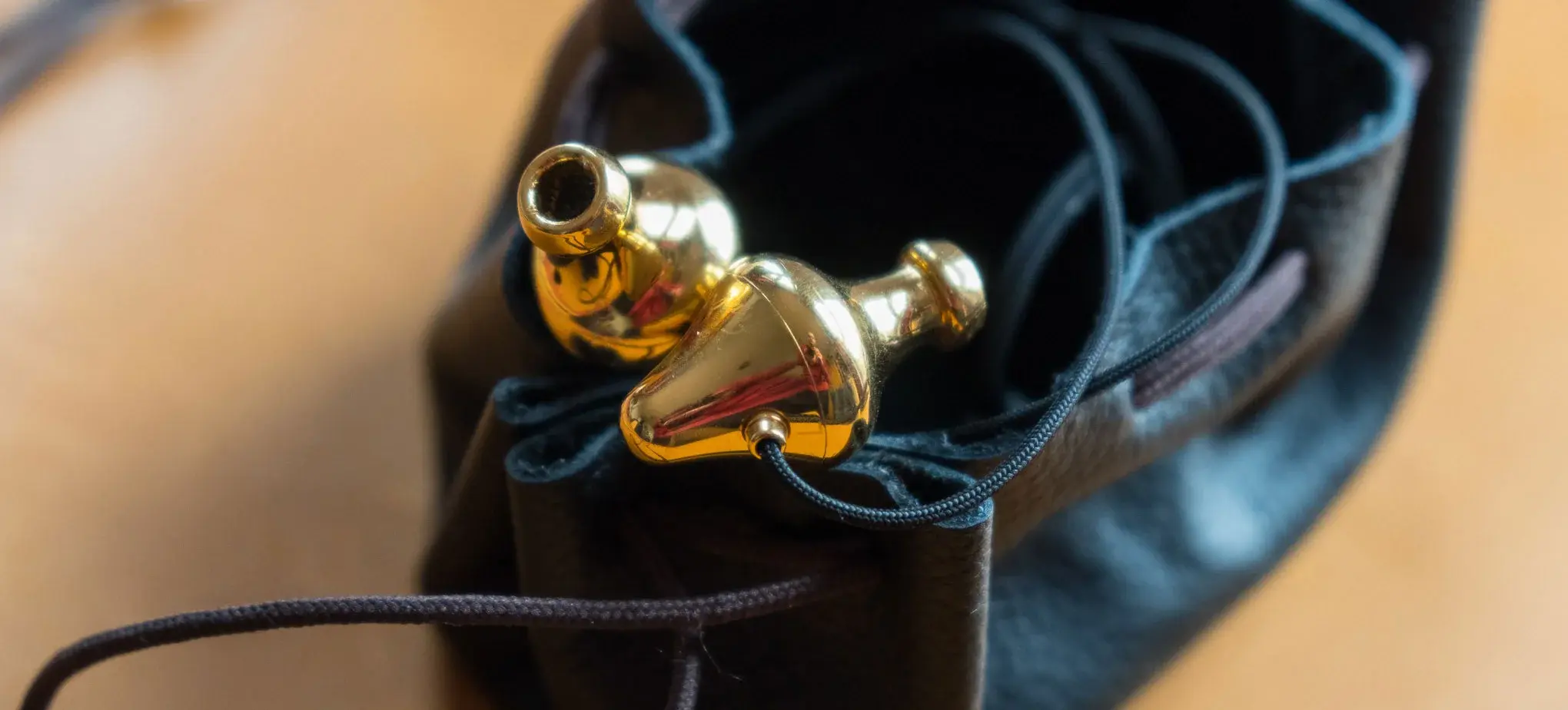 Наушники изготовлены в корпусах из меди с хромированием и по форме напоминают античные амфоры.
