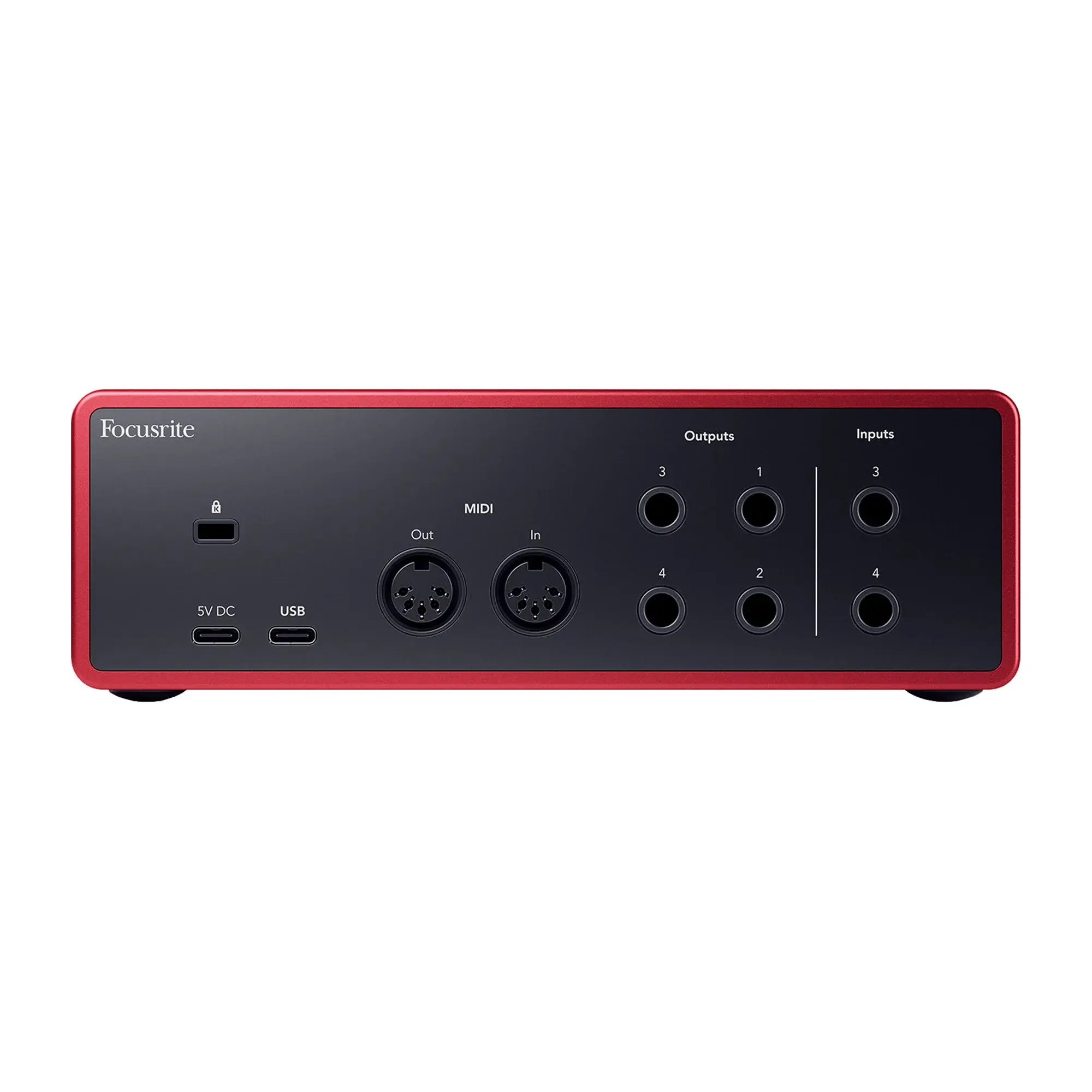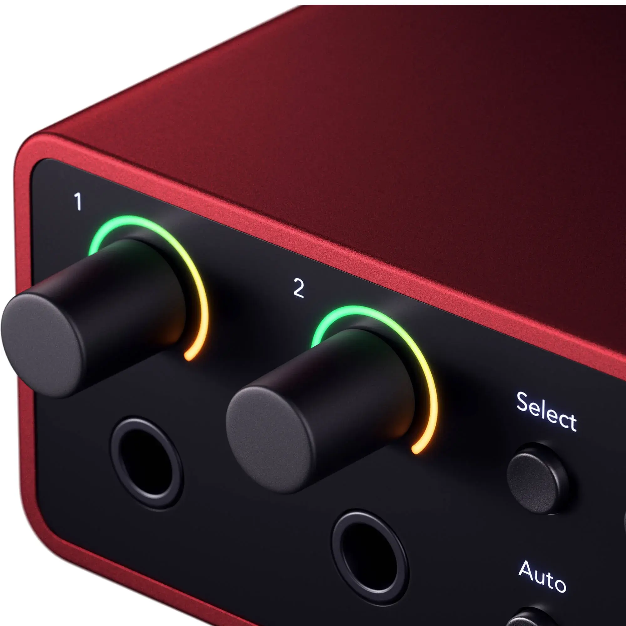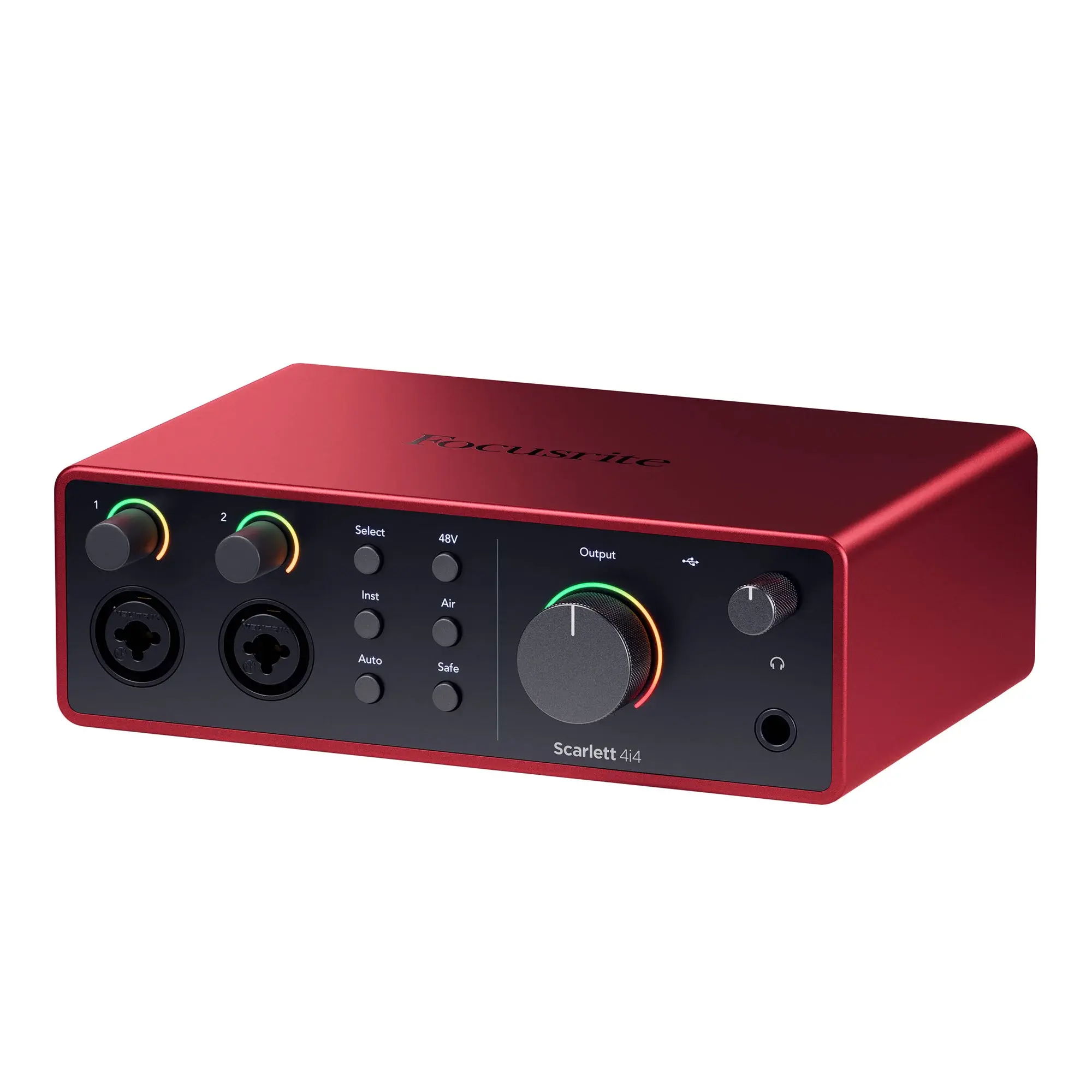 Focusrite Scarlett 4i4 4th Gen представляет собой 4-канальный USB-аудиоинтерфейс, относящийся к 4-му поколению популярной линейки Scarlett. Обновленные модели предлагают улучшенные технические характеристики, удобные режимы для максимально простой и эффективной работы с устройством, а также мощный усилитель для наушников и качественные микрофонные преампы. Прибор отлично подойдет для домашней или студийной деятельности, а также может использоваться в качестве портативного устройства для записи или воспроизведения.