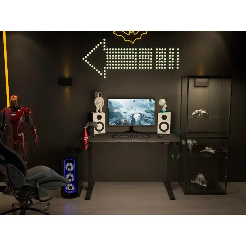 Столешница игрового стола прочная и долговечная, вмещает один или два монитора, современные гаджеты, большие коврики под мышь.