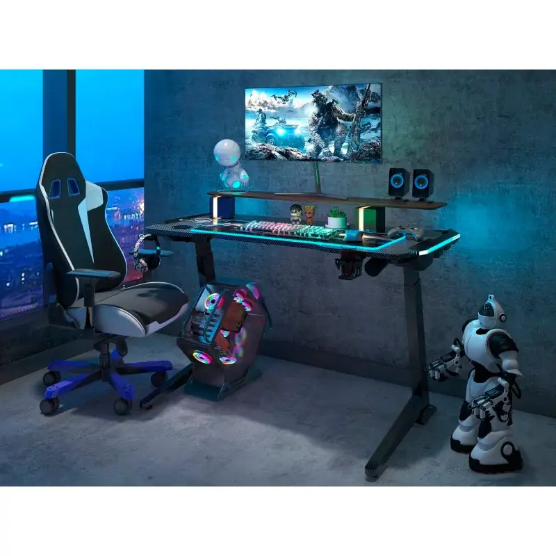 Компьютерный стол FoxGear FG-ZE-49B c электроприводом - это эргономичный стол, который регулируется по высоте, не вибрирует и остается бесшумным при подъёме до 50 кг, благодаря плавному пуску. Подсветка создает игровую атмосферу. Это эффектный и привлекательный способ светового оформления столов. Она способна изменять цвет и характер свечения, получаются интересные эффекты.