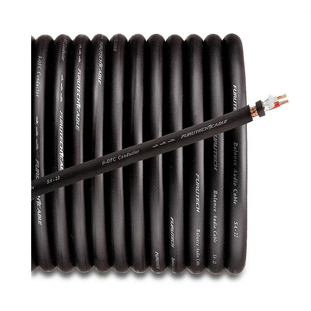Межблочный кабель Furutech SA-22 создан для коммутации аудиокомпонентов класса High End. Проводник кабеля изготовлен по Alpha-технологии из монокристаллической бескислородной меди PCOCC и снабжен медной экранирующей оплеткой. Производитель утверждает, что это гарантирует передачу аналогового сигнала без помех и значимых искажений. В качестве диэлектрической изоляции использован полиэтилен (оболочка Flexible PVC).