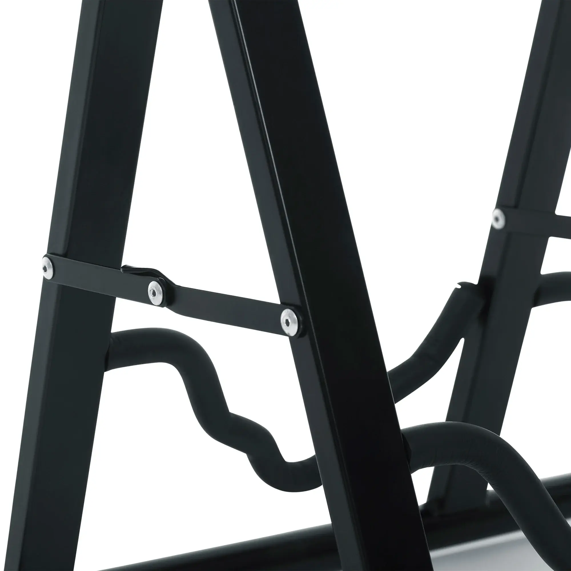 Универсальная стойка для гитары Gator Double A-Frame Guitar Stand разработана для двух электрогитар или акустических гитар благодаря двойной конструкции. Прочная стальная конструкция и резиновые ножки обеспечивают устойчивость.