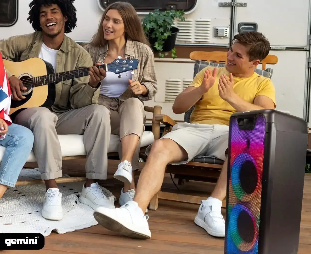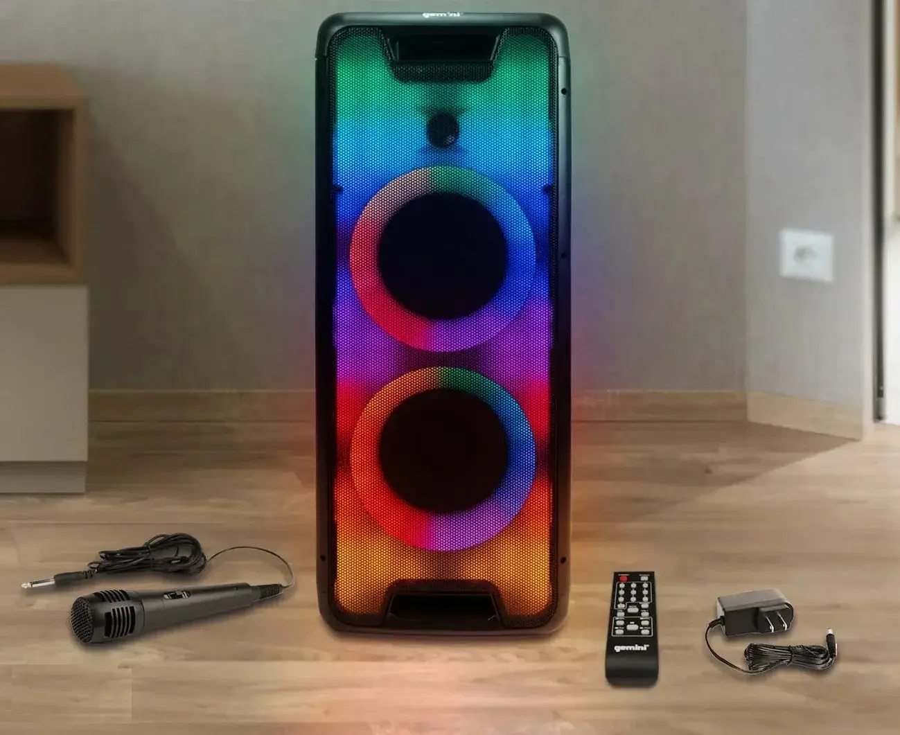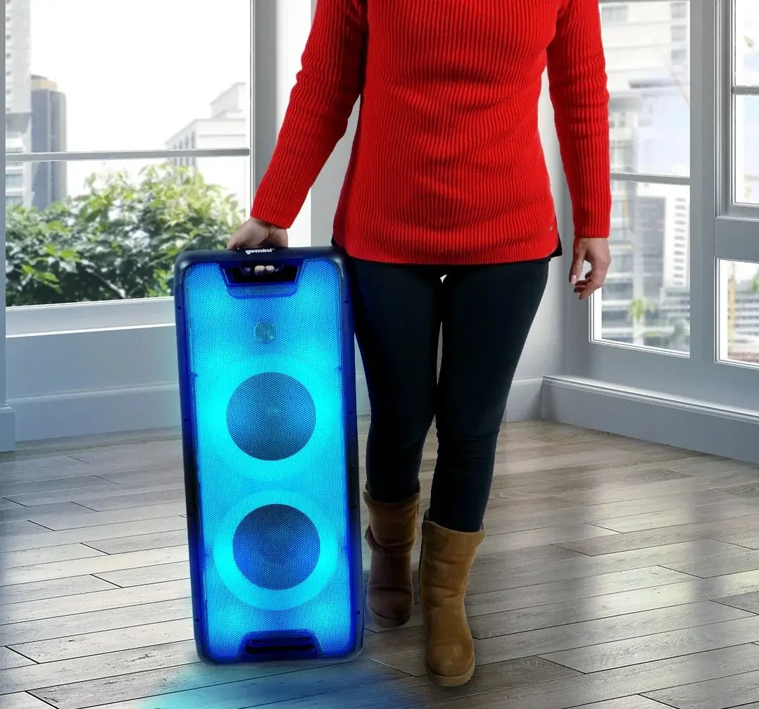 Gemini GLS-880 - это акустическая система с двумя 8-дюймовыми динамиками, с подключением и воспроизведением по Bluetooth, и настраиваемой светодиодной подсветкой для вечеринок с синхронизацией с ритмом музыки.