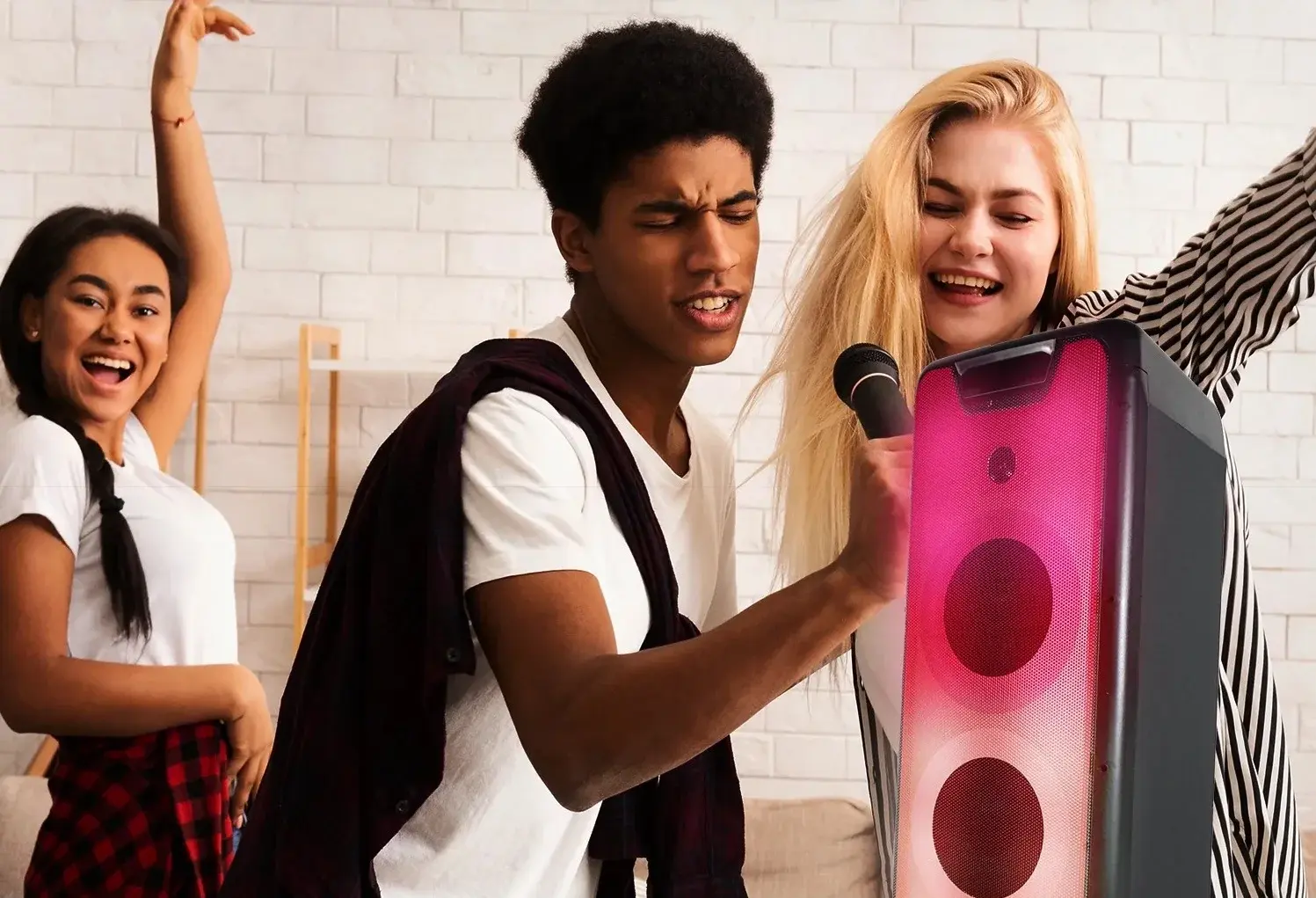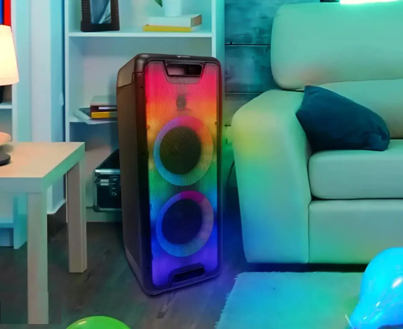 Поразите гостей вечеринки завораживающим светопреставлением с функцией синхронизации с ритмом музыки. Пользователю доступны 4 различных режима световых эффектов. Встроенные в переднюю часть динамика светодиоды меняют режимы мерцания и оттенки цвета.