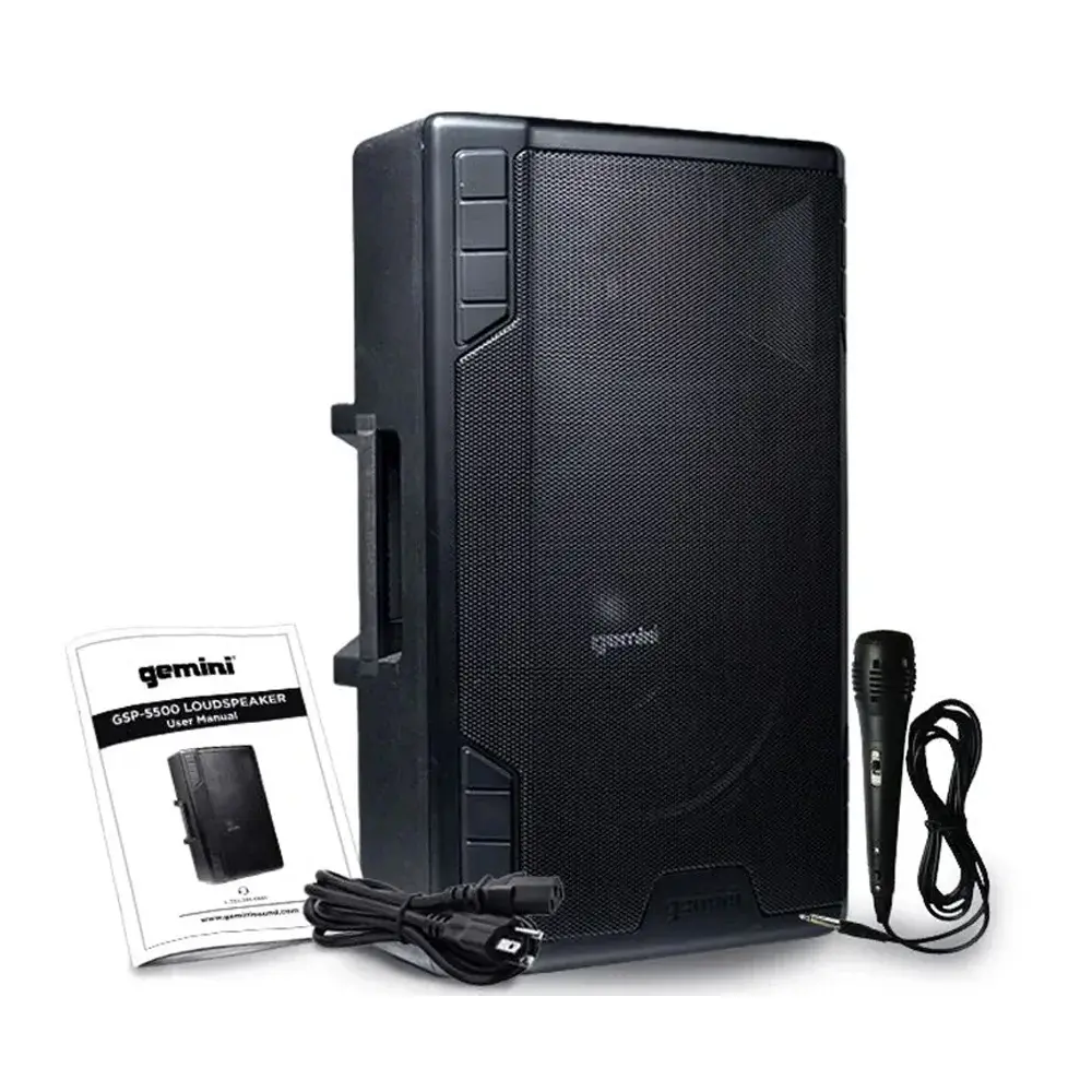 GSP-5500 - это мощная 15-дюймовая акустическая система, которая обеспечивает исключительную производительность, что делает ее идеальной в качестве диджейской колонки, громкоговорителя, мощной акустической системы для монитора и сценической акустической системы. Этот 15-дюймовый динамик оснащен высокоэффективным усилителем класса AB с пиковой мощностью 2200 Вт, обеспечивающим мощные басы и кристально чистые высокие частоты.