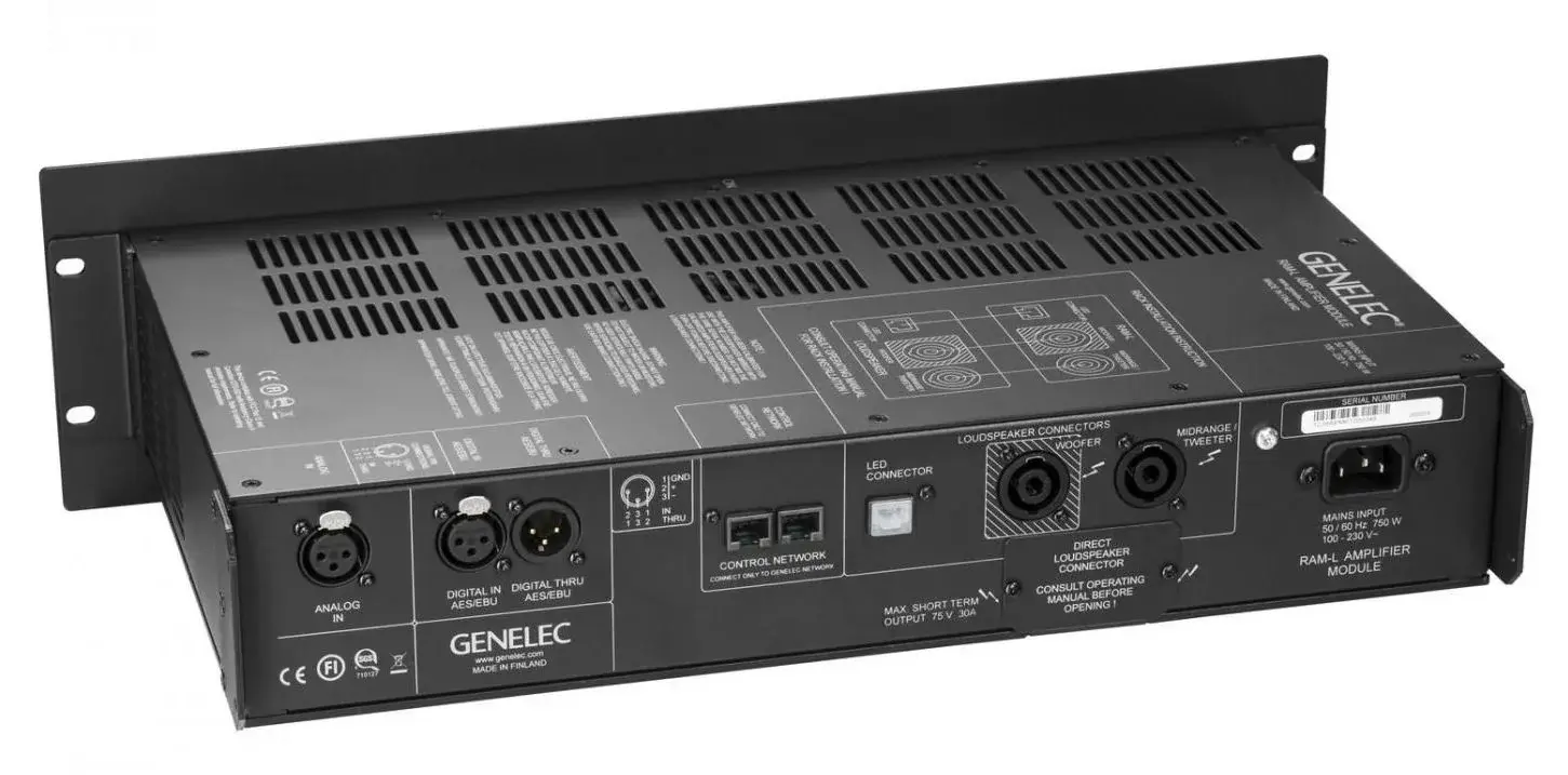 Genelec – активный трехполосный студийный монитор среднего поля. Инсталляция упрощена благодаря рэковому модулю удаленного усилителя RAM-L высотой 2U, к которому громкоговоритель подключается кабелями со штекерами Speakon.
