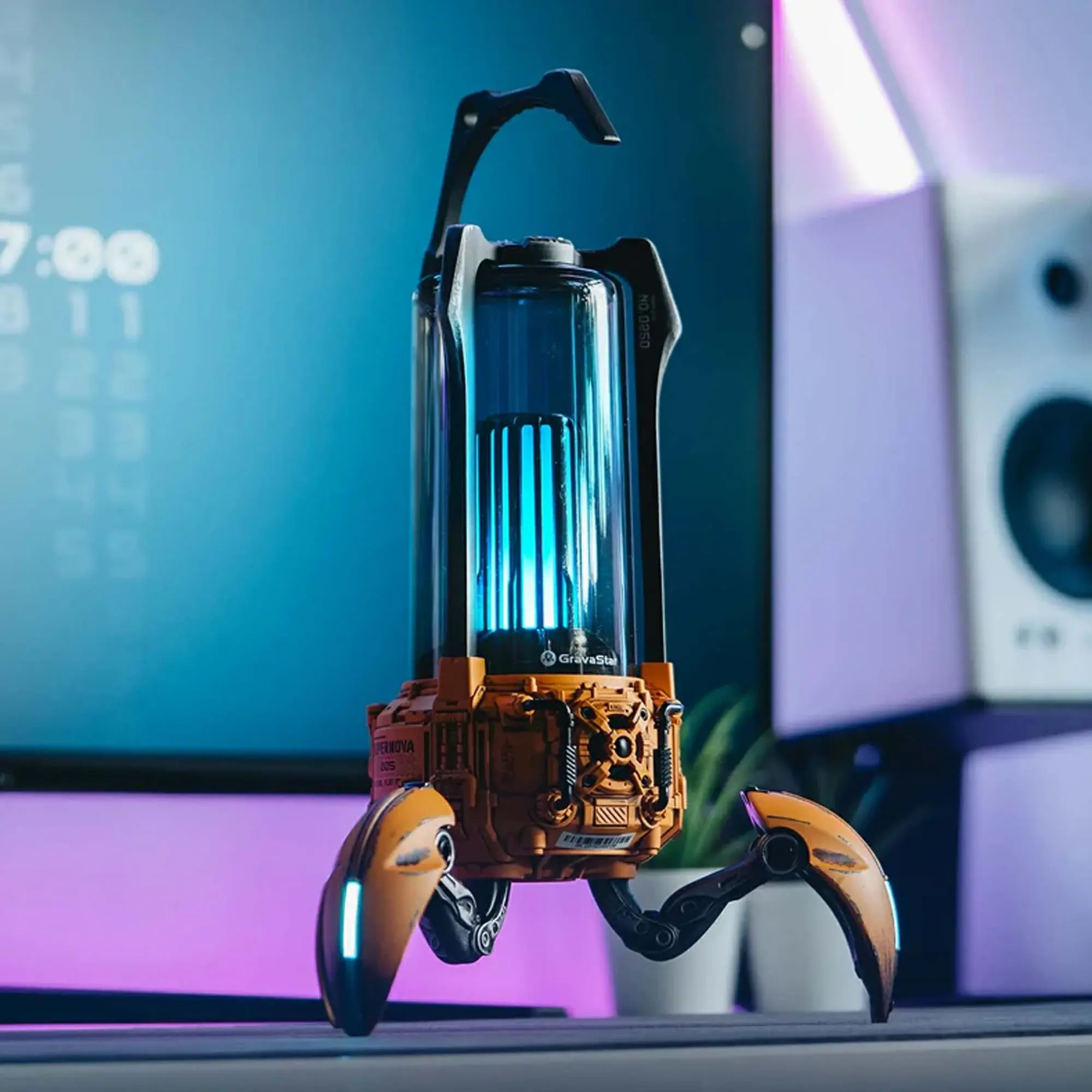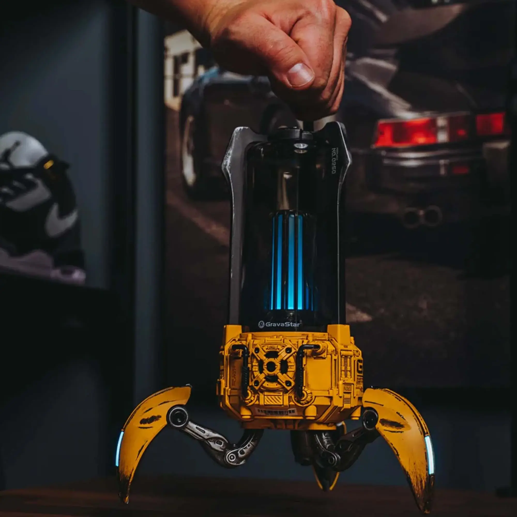 Для мобильного использования Gravastar Supernova оснащена складными ножками, которые легко разворачиваются для установки на столе или полу. Также есть удобная ручка для переноски, которая делает устройство лёгким в транспортировке. Корпус выполнен из прочного цинкового сплава, что обеспечивает долговечность и защиту от повреждений, даже если колонка случайно упадёт.