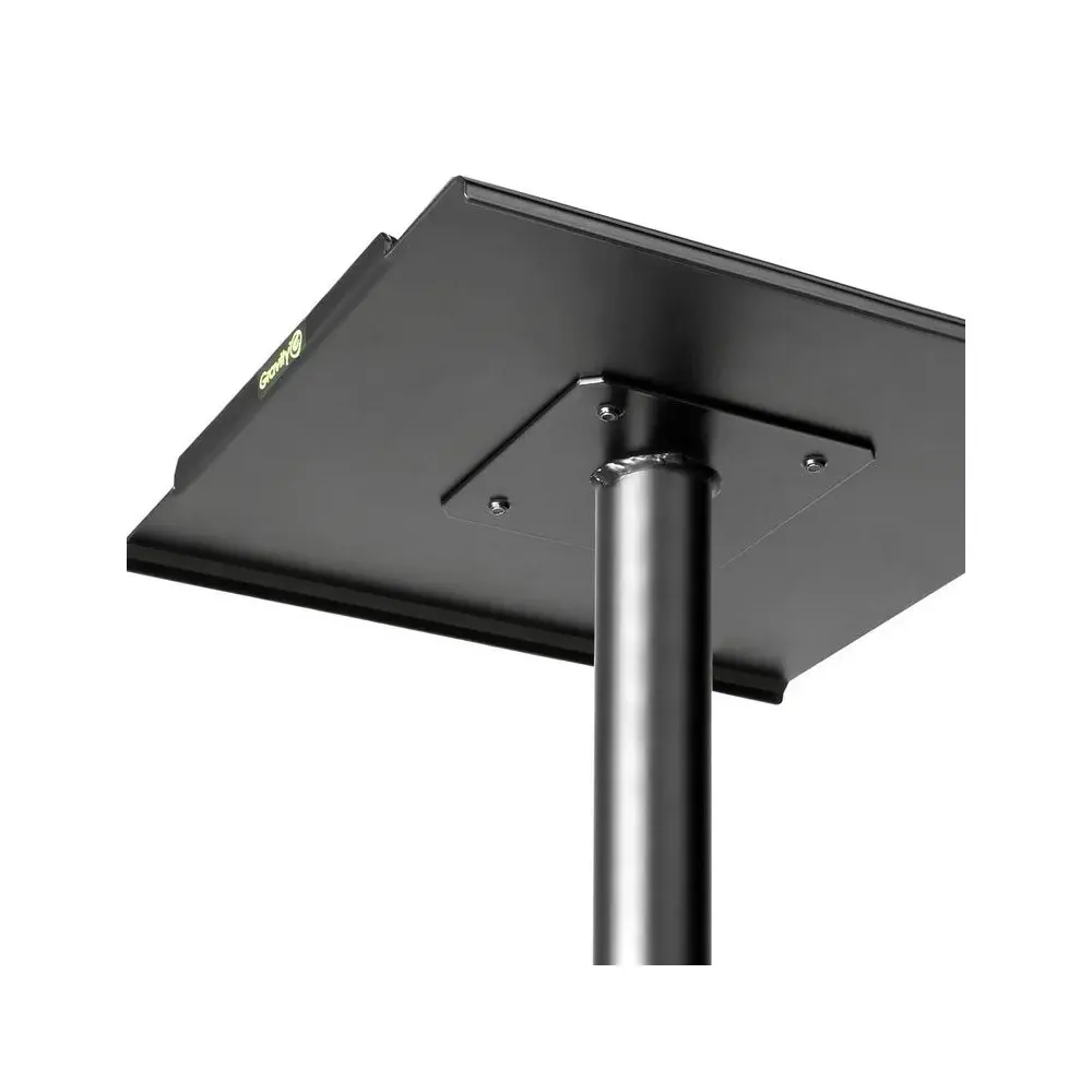 Стойка для студийных мониторов Gravity SP 3202 имеет треугольное массивное чугунное основание и стальную площадку под монитор размером 250 х 250 мм с прокладками для демпфирования. Стойка регулируется по высоте от 90 до 150 см для оптимального расположения громкоговорителей. В комплекте набор шипов, которые устанавливаются на резиновые ножки основания.