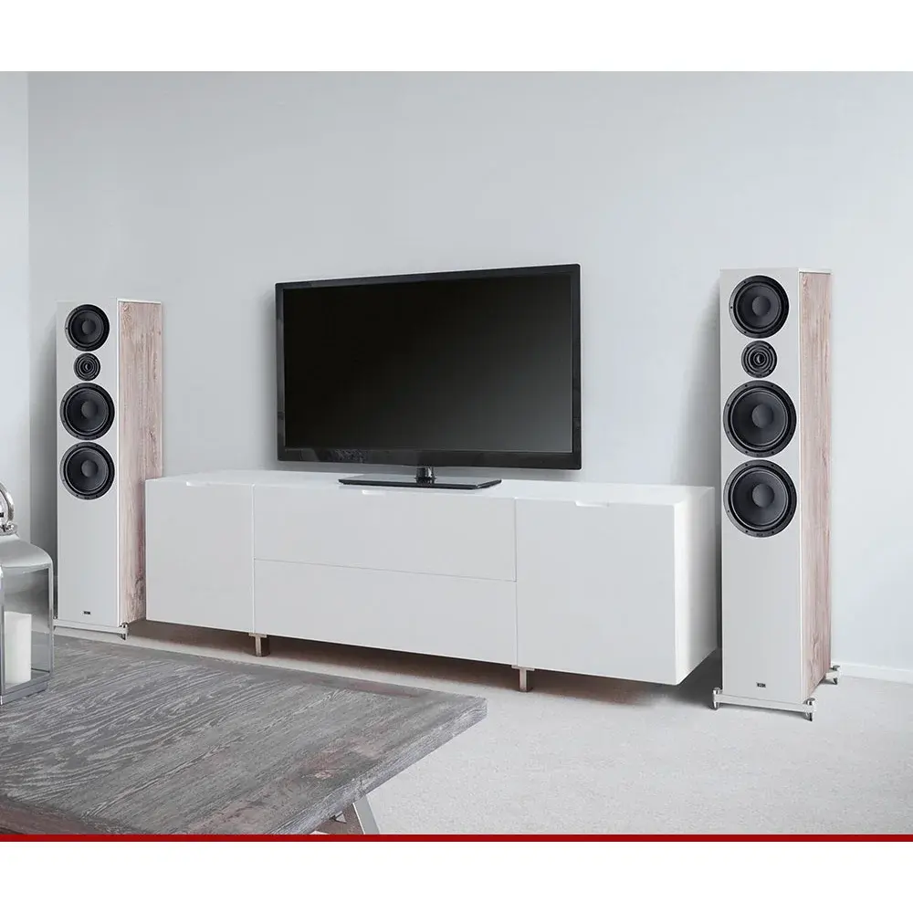 Имеет два 170 мм вуфера и один 170 мм мидрейнж с диффузорами из крафт бумаги HECO, и демонстрирует максимальную естественность, тембральную точность и высокую скорость в совокупности с масштабным басом.