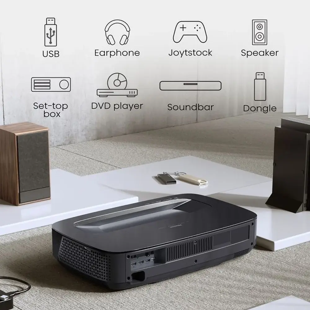 Работающий под управлением операционной системы VIDAA U7, проектор совместим с Apple AirPlay 2 и Apple Homekit. Кроме того, на устройстве имеются порты HDMI 2.1, USB и аудиоразъем.