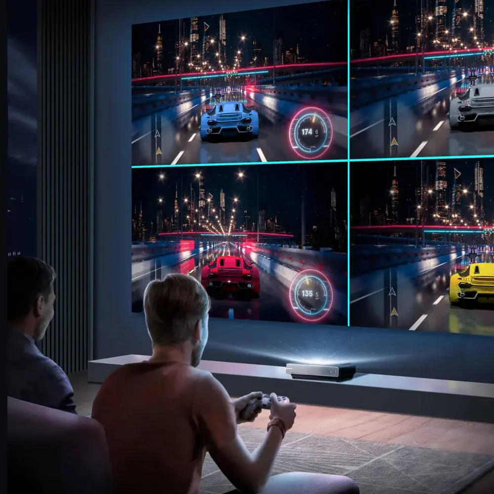 Ультракороткофокусный лазерный проектор создает яркое и красочное 4K-изображение сверхбольших диагоналей до 130 дюймов, расширяя границы для новых впечатлений.