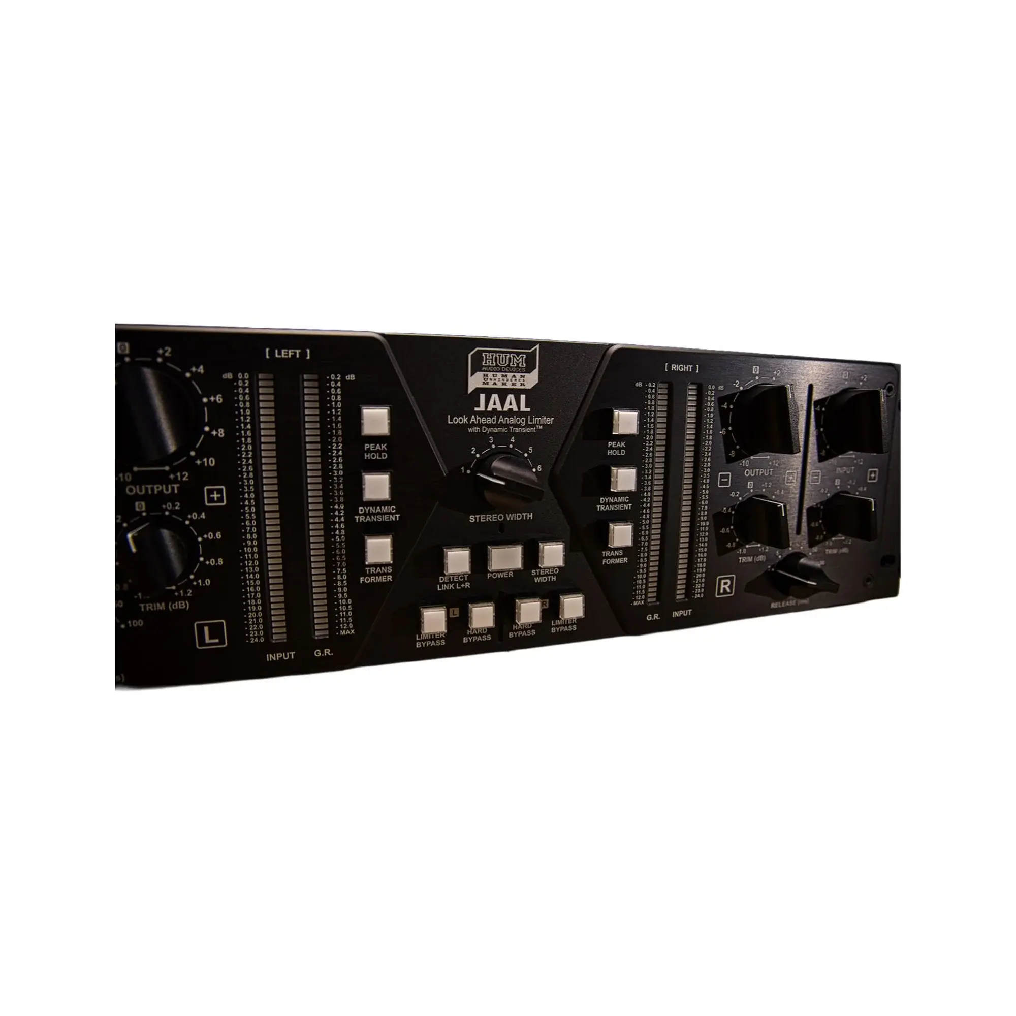 Каждый компонент звукового тракта лимитера был тщательно отобран, а источник питания был разработан HUM Audio Devices специально для LAAL. Большие регуляторы уровня входного и выходного сигнала для каждого канала обеспечивают диапазон усиления от -10 до +12 дБ с шагом 2 дБ, в то время как регулятор подстройки предлагает дополнительную, более точную настройку в диапазоне от -1 до +1,2 дБ с шагом 0,2 дБ.