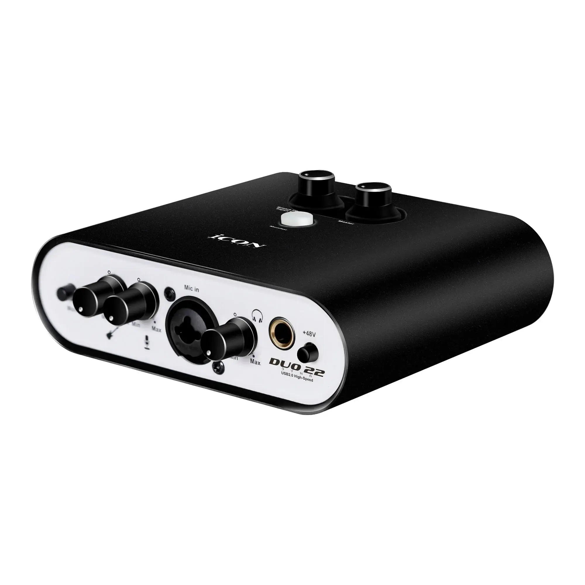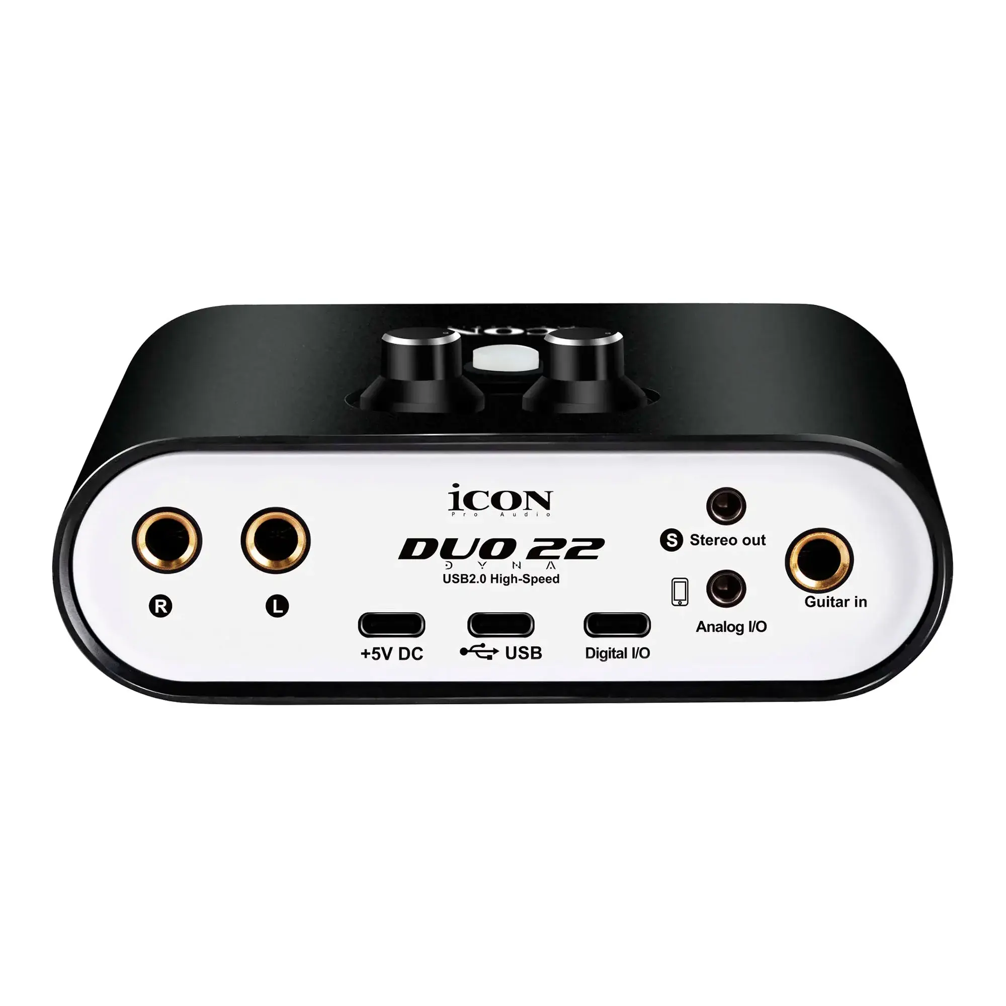 iCON Duo 22 Dyna представляет собой портативный USB-аудиоинтерфейс, подходящий для использования как с компьютерами, так и со смартфонами. Модель позволяет создавать качественные аудиозаписи и воспроизводить аудио в несжатом формате, чему способствуют 24-битные АЦ/ЦА-конверторы с максимальной разрядностью 192 кГц. Они также отличаются широким динамическим диапазоном 116 и 127 дБ соответственно. Звуковая карта подходит для операционных систем Windows (7 или старше), macOS (10.11 или старше), iOS (9 или старше) и Android.