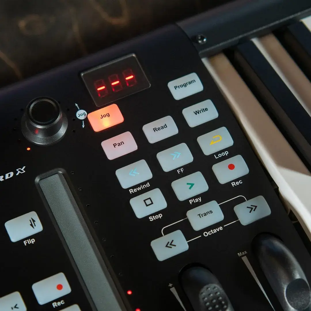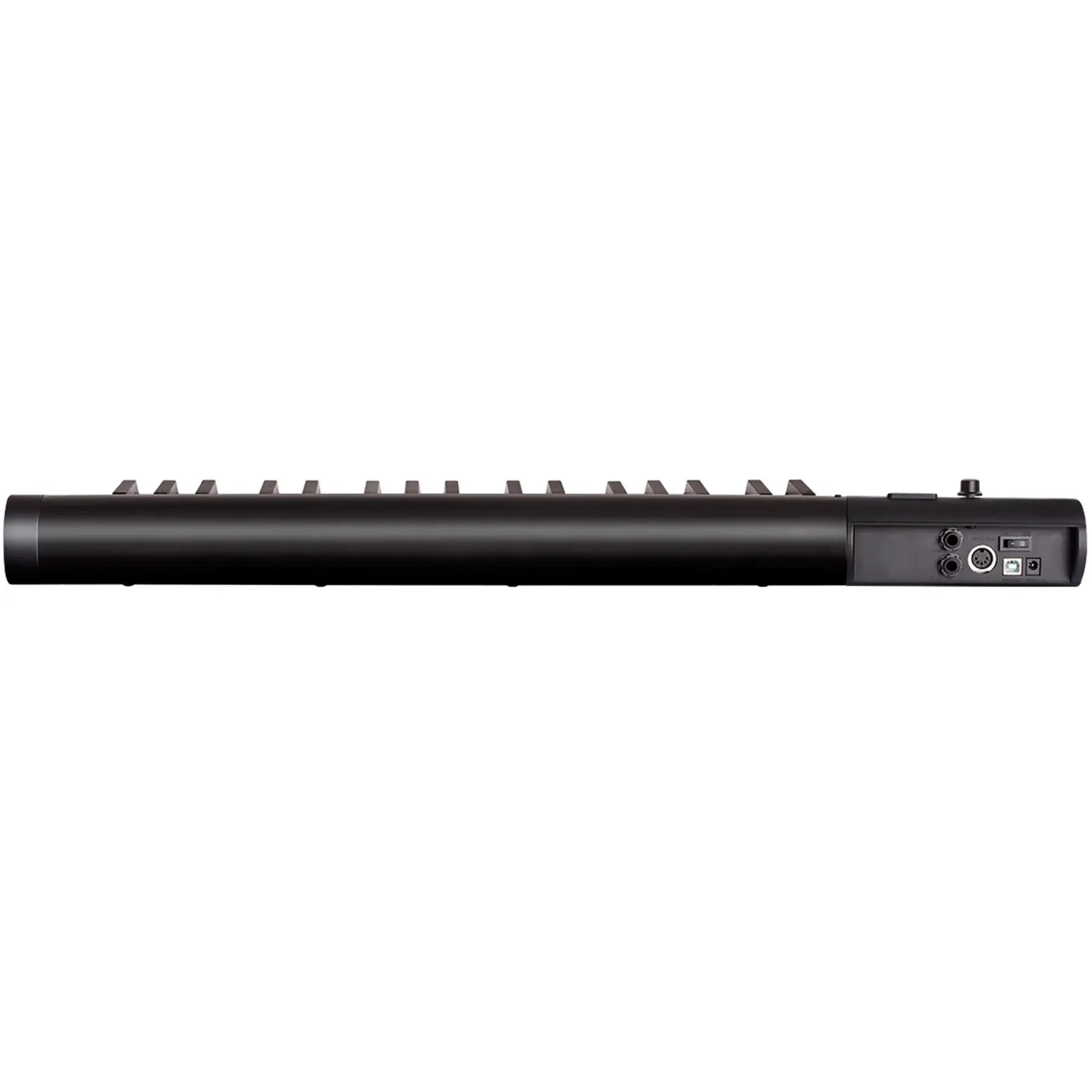 MIDI-клавиатура оборудована 37 полноразмерными клавишами фортепианного типа, которые имеют качественную чувствительность к силе нажатия. Органы управления располагаются рядом с клавишами: 2 колеса для изменения высоты тона и модуляции, 23 кнопки для навигации и настройки процесса записи, а также сенсорная полоса с 13-сегментной подсветкой, энкодер и ЖК-дисплей. Таким образом, можно играть музыкальные партии, записывать исполнение и настраивать некоторые функции, не прикасаясь к компьютерной клавиатуре. Для выключения прибора на задней его части располагается переключатель.