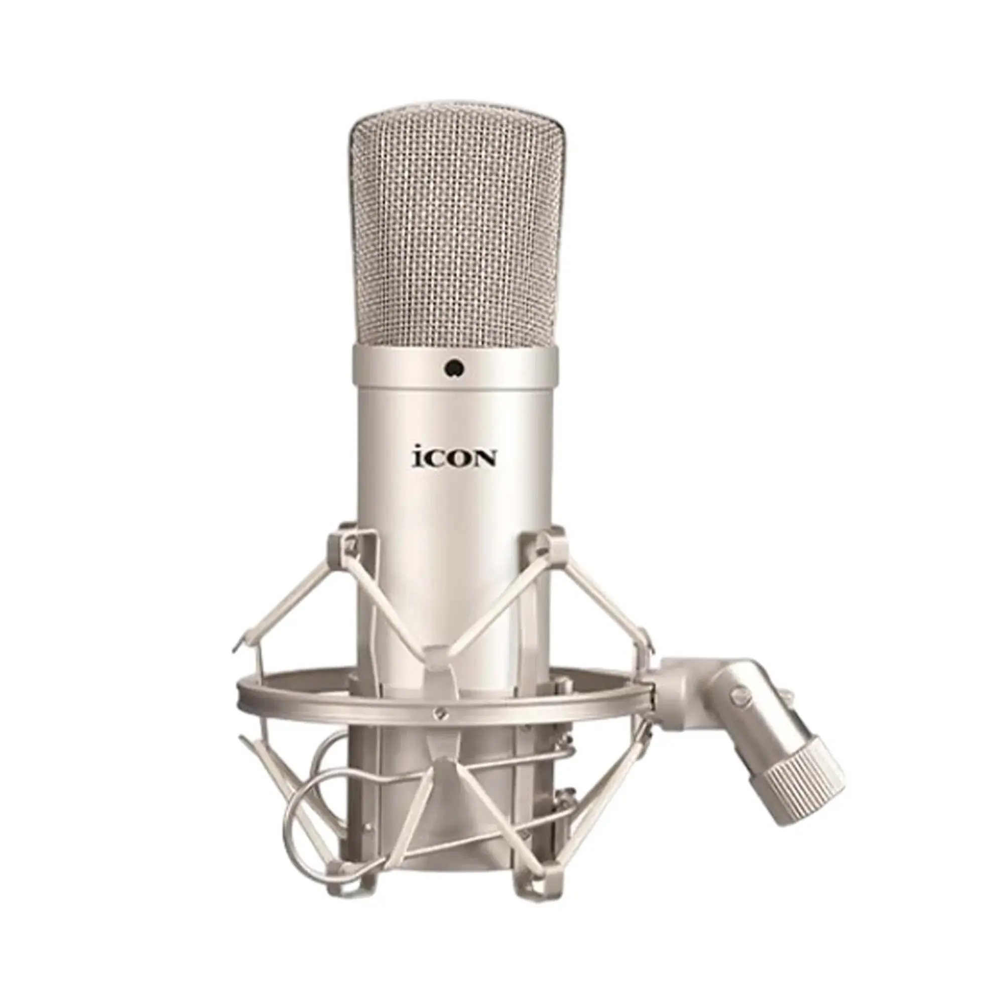Выход для подключения к различному оборудованию представлен стандартным 3-контактным разъемом XLR. Корпус микрофона представляет собой прочную конструкцию из литой стали. Капсюль защищен сетчатым металлическим грилем. Для корректной работы необходим источник фантомного питания +48 В, которое могут обеспечить большинство современных звуковых карт и микшерных пультов. В комплекте поставляется антивибрационный подвес, ветрозащита, мягкий чехол на молнии. Опционально можно приобрести поп-фильтр iCON PF-01 для защиты от взрывных согласных.