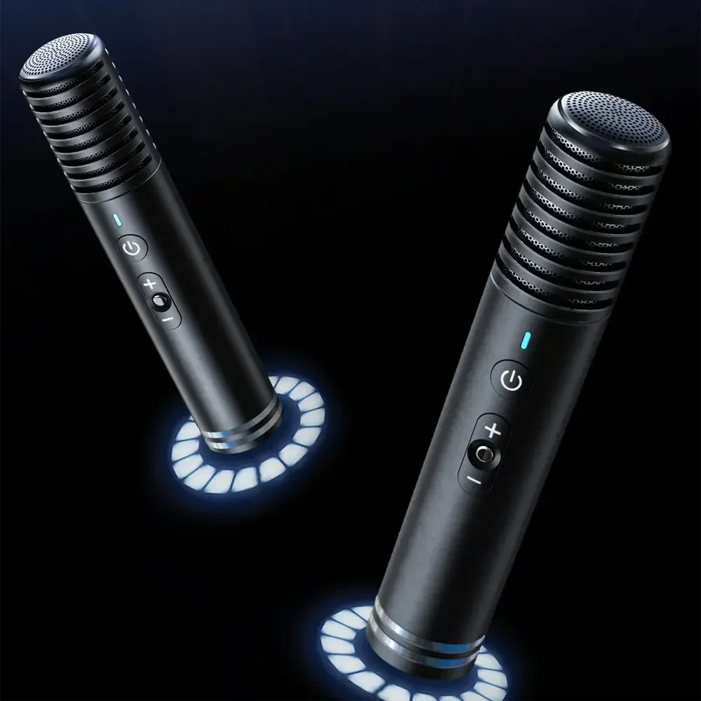 Динамический беспроводной микрофон обеспечивает стабильное и чистое звучание на расстоянии 10 метров и 12-часовое время автономной работы. Он оснащен множеством звуковых эффектов и настраиваемыми настройками, что делает его идеальным для любителей караоке, исполнителей и публичных выступлений.