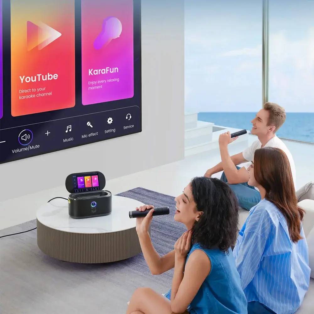Shell S1 - портативная андроид караоке-система. Возьмите Ikarao S1 с собой на природу — его компактный и прочный дизайн идеально подойдет для любых приключений. Наслаждайтесь великолепным звуком в любом месте, не беспокоясь о подзарядке.