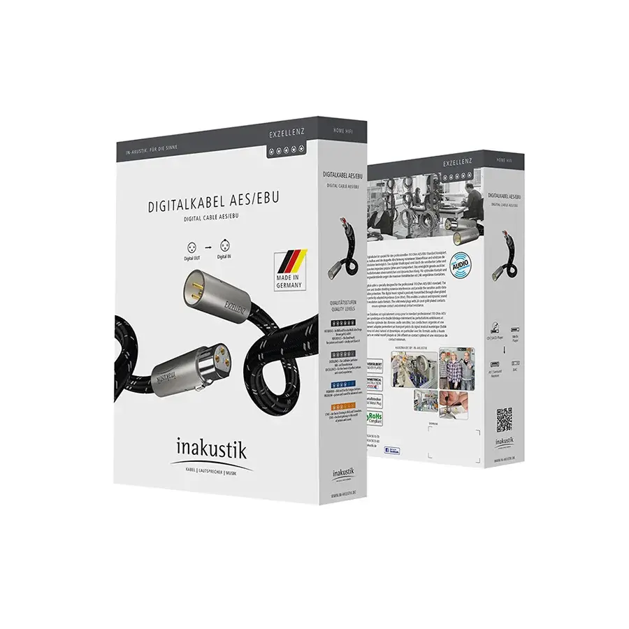 Высококачественный цифровой кабель межблочный аудио, AES/EBU, Сделано в Германии! Коаксиальная структура, посеребренная бескислородная медь OFC, двойной экран, покрытие разъемов золотом 24К.
